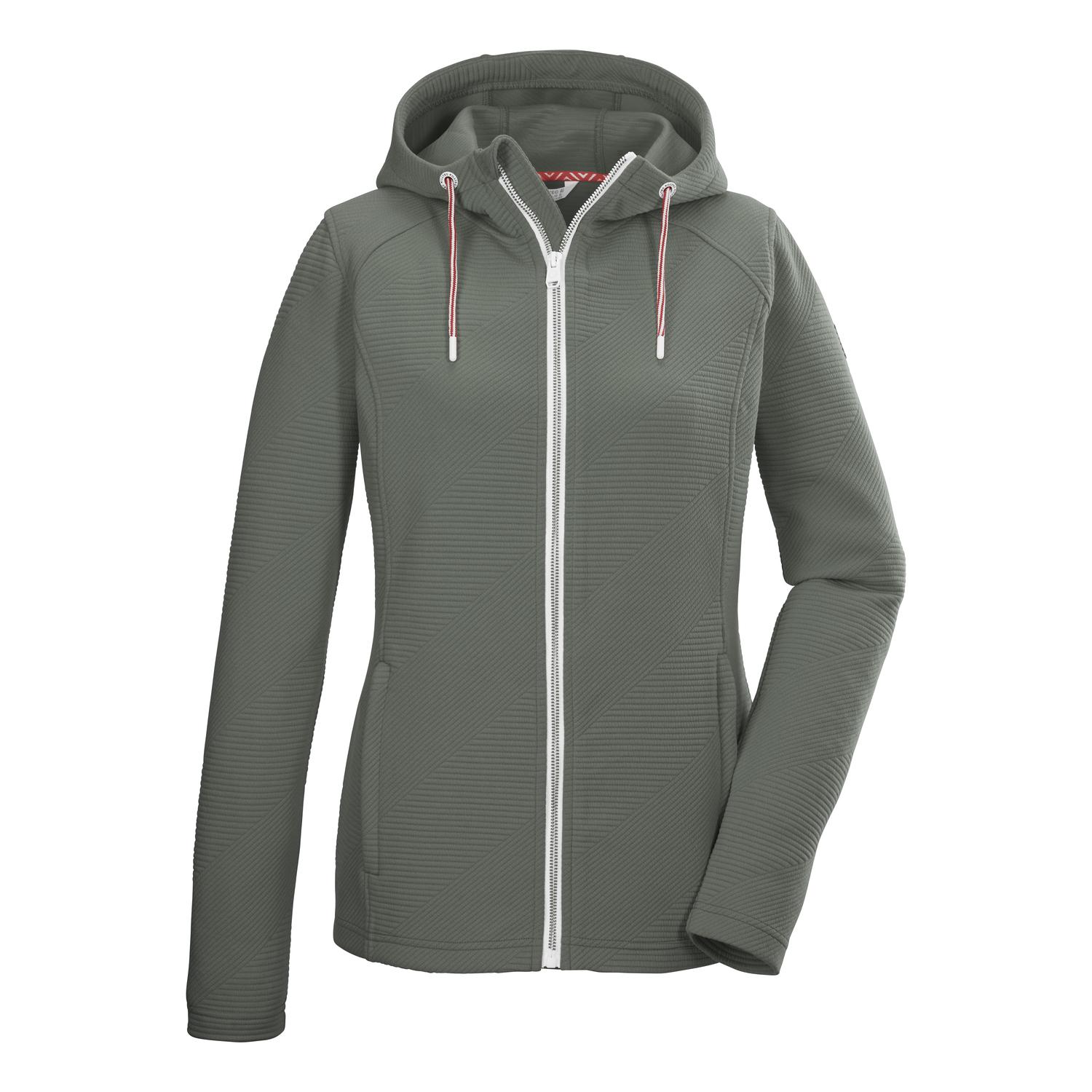 Damen Powerstretchjacke mit Kapuze als Midlayer oder Übergangsjacke geeignet geometrisches Streifen-Muster Seitentaschen mit Zippern Reißverschluss mit Kinnschutz Name: KOS 33 WMN FLX JCKT Saison: Frühjahr/Sommer Die killtec Damen Powerstretchjacke mit Kapuze besticht optisch durch ihr geometrisches Streifen-Muster. Sie ist als Übergangsjacke oder als Midlayer unter der wetterfesten Jacke geeignet. Die Jacke hat praktische Seitentaschen mit Zippern und einen Kinnschutz am Reißverschluss, der die Haut vorm Einklemmen schützt.