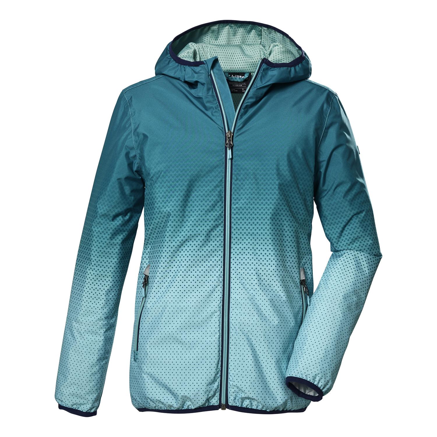 Funktionsjacke für Mädchen mit KapuzeNähte verschweißt, 100% wasserdicht, 10.000 mm Wassersäulecooler Farbverlauf, modisch reflektierende Elementeelastische Bündchen, seitliche Taschen mit ZippernPFAs-freie Imprägnierung, gut für dich und die UmweltName: KOS 331 GRLS JCKTSaison: Frühjahr/SommerDie packbare Funktionsjacke für Mädchen von killtec ist der ideale Begleiter für alle Outdoor-Aktivitäten. Das Material ist winddicht und dank verschweißter Nähte sowie einer 10.000 mm Wassersäule 100% wasserdicht. Die Outdoorjacke ist mit elastischen Bündchen, seitlichen Zippertaschen und modisch reflektierenden Elementen ausgestattet. Das coole Muster mit Farbverlauf und die farbig abgesetzten Zierkanten machen die Jacke auch optisch zu einem tollen Blickfang. killtec liegt es besonders am Herzen, die Kollektionen nachhaltiger und zukunftsfähiger zu machen. So setzt killtec verstärkt auf verantwortungsbewusstere Herstellungsverfahren. Diese Jacke wurde daher mit fluorfreien Mitteln imprägniert.