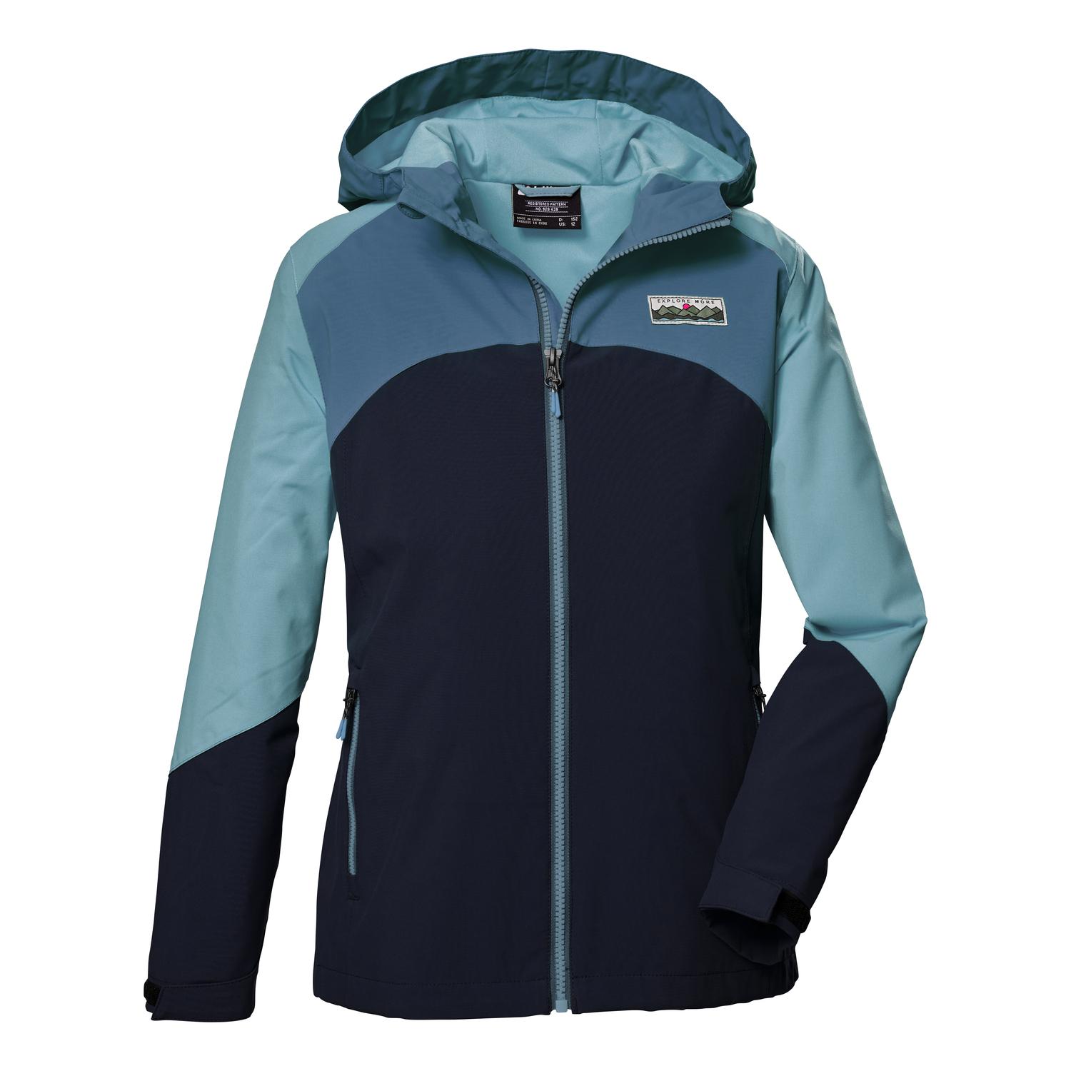 Mädchen Funktionsjacke mit verstellbarer KapuzeNähte verschweißt, 100% wasserdicht, 10.000 mm WassersäuleÄrmelbündchen verstellbar, Zipper mit Kinnschutzangesagtes Colourblock DesignPFAs-freie Imprägnierung, gut für dich und die UmweltName: KOS 335 GRLS JCKTSaison: Frühjahr/SommerDie killtec Mädchen Funktionsjacke mit verstellbarer Kapuze und in angesagtem Colourblock Design ist der perfekte Begleiter bei Wind und Wetter. Sie hat verschweißte Nähte und ist wasserdicht mit einer Wassersäule von 10.000 mm. Die Ärmelabschlüsse lassen sich durch Klettverschlüsse verstellen. Der Saum ist anhand eines Kordelzuges verstellbar. Die zwei Seitentaschen sind mit Zippern verschließbar, sodass nichts verloren geht. Der Frontreißverschluss hat einen Kinnschutz, der ein Einklemmen der Haut verhindert. killtec liegt es besonders am Herzen, die Kollektionen nachhaltiger und zukunftsfähiger zu machen. So setzt killtec verstärkt auf verantwortungsbewusstere Herstellungsverfahren. Diese Jacke wurde daher mit fluorfreien Mitteln imprägniert.