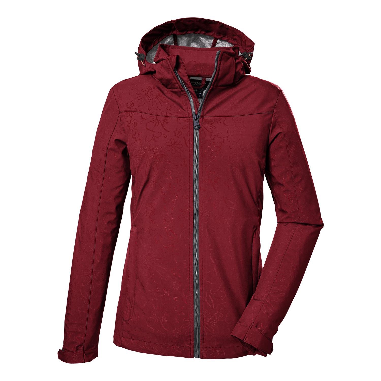 Damen Softshelljacke mit All Over Printwind- und wasserabweisend, Wassersäule 10.000 mmatmungsaktiv, Wasserdampfdurchlässigkeit 3.000 g/m²/24 hKapuze regulierbar und abzippbarPFAs-freie Imprägnierung, aus recyceltem MaterialSaum und Ärmelbündchen verstellbarName: KOS 40 WMN SFTSHLL JCKTSaison: Frühjahr/SommerDie killtec Damen Softshelljacke mit besonderem All Over-Print begleitet zuverlässig bei Wind und Wetter. Sie ist mit einer Wassersäule von 10.000 mm wasserabweisend und winddicht. Gleichzeitig ist sie atmungsaktiv mit einer Wasserdampfdurchlässigkeit von 3.000 g/m²/24 h. Die Kapuze ist regulierbar und bei Bedarf abzippbar. Der Saum lässt sich mithilfe eines Kordelzuges regulieren und die Ärmelbündchen sind durch Klettverschlüsse verstellbar. Der Frontreißverschluss ist mit einem Kinnschutz versehen, der die Haut vor dem Einklemmen schützt. Die zwei Seitentaschen lassen sich mit Zippern verschließen, sodass nichts verloren geht. killtec liegt es besonders am Herzen, die Kollektionen nachhaltiger und zukunftsfähiger zu machen. So setzt killtec verstärkt auf verantwortungsbewusstere Herstellungsverfahren. Diese Jacke wurde daher mit fluorfreien Mitteln imprägniert und aus recyceltem Material gefertigt.