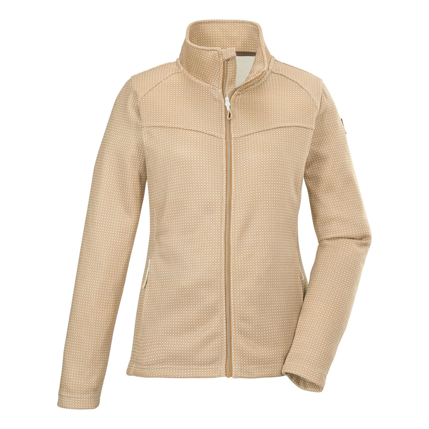Damen Strickfleecejacke mit Stehkragen weiches Fleecefutter hoher Tragekomfort dank Comfort-Stretch eleganter All Over-Print verschließbare Taschen, Zipper mit Kinnschutz Name: KOS 90 WMN FLC JCKT Saison: Frühjahr/Sommer Die killtec Damen Strickfleecejacke mit Stehkragen ist ein Allroundtalent für Freizeit und Alltag. Optisch besticht sie durch ihren eleganten All Over-Druck. Das Material mit Comfort-Stretch und das weiche Fleecefutter versprechen einen angenehmen Tragekomfort. Die zwei seitlichen Eingrifftaschen sind mit Zippern verschließbar, sodass nichts verloren geht. Der Front-Reißverschluss ist mit einem praktischen Kinnschutz ausgestattet.