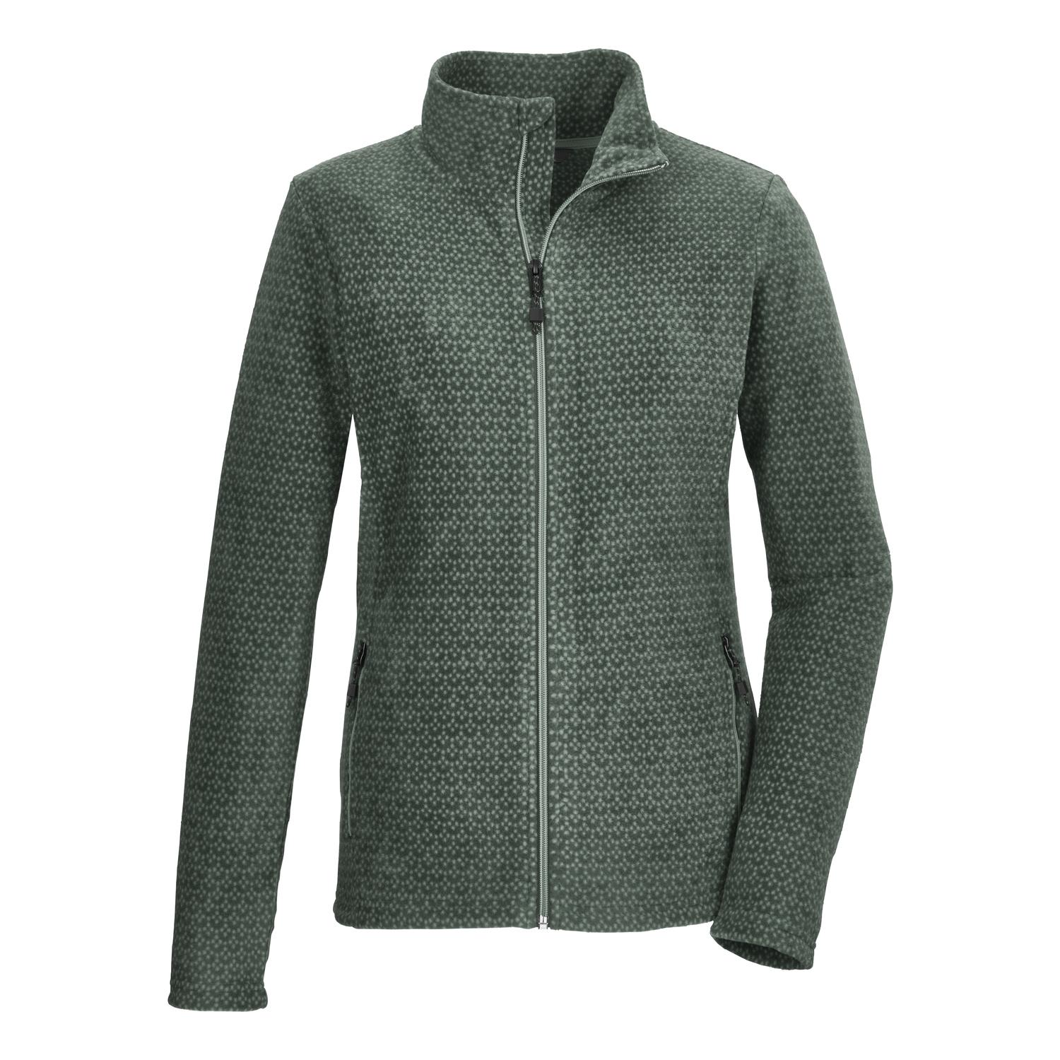 Damen Fleecejacke mit Stehkragenals Midlayer und Übergangsjacke geeignetAll Over-Print, vielseitig kombinierbarTaschen mit ZippernReißverschluss mit KinnschutzName: KOW 106 WMN FLC JCKTSaison: Herbst/WinterDie killtec Damen Fleecejacke mit Stehkragen besticht durch ihren All Over-Print und ist der perfekte Begleiter in der kühleren Jahreszeit. Sie lässt sich vielseitig kombinieren und kann sowohl als Übergangsjacke oder als Midlayer unter der wetterfesten Jacke getragen werden. Das Material mit Comfort-Stretch verspricht einen hohen Tragekomfort. Die beiden Eingrifftaschen sind mit Zippern verschließbar. Der Frontreißverschluss hat einen Kinnschutz, der ein Einklemmen der Haut verhindert.