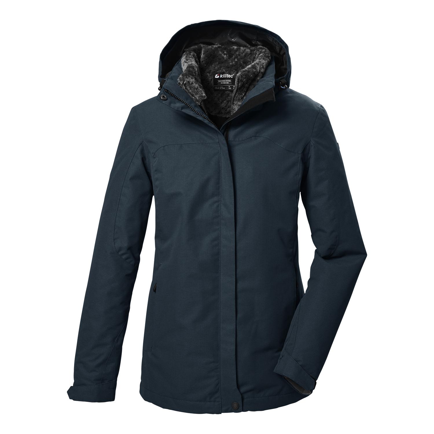 3 in 1 Jacke mit regulierbarer, abzippbarer Kapuze10.000 mm Wassersäule, verschweißte Nähte, wasserdichtatmungsaktiv, Wasserdampfdurchlässigkeit 3.000 g/m²/24 hzusätzliche einzippbare FleecejackePFAs-freie Imprägnierung, gut für dich und die UmweltName: KOW 303 WMN JCKTSaison: Herbst/WinterDie vielseitige 3 in 1 Damen Funktionsjacke mit abnehmbarer, weitenregulierbarer Kapuze von killtec ist ein absolutes Allroundtalent. Die Außenjacke verfügt über hochfunktionelle Eigenschaften. Sie ist mit einer 10.000 mm Wassersäule und durch verschweißte Nähte wasser- und winddicht (Achtung: Ab und zu sollte die Jacke neu imprägniert werden). Gleichzeitig ist das Material atmungsaktiv (3.000 g/m²/24 h). Die Eingrifftaschen und die Innentasche bieten Platz für Handy und Co. Die Ärmelbündchen sind durch Klettverschlüsse verstellbar. Der verdeckte Reißverschluss ist mit einem praktischen Kinnschutz ausgestattet. Ein besonderes Highlight ist die zusätzliche Fleecejacke, die sich ganz einfach ein- oder abzippen lässt. Dadurch kann man die Jacke flexibel an jede Wetterlage anpassen. killtec liegt es besonders am Herzen, die Kollektionen nachhaltiger und zukunftsfähiger zu machen. So setzt killtec verstärkt auf verantwortungsbewusstere Herstellungsverfahren. Diese Funktionsjacke wurde daher mit fluorfreien Mitteln imprägniert.