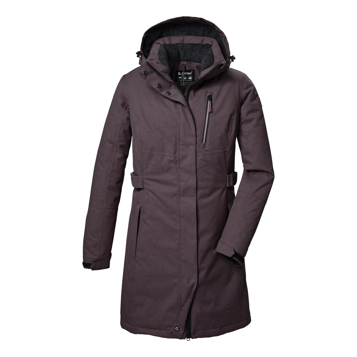 Funktionsparka mit regulierbarer, abzippbarer Kapuze10.000 mm Wassersäule, verschweißte Nähte, wasserdichtatmungsaktiv (3.000 g/m²/24h), winddichtseitliche Taillenregulierung, 2-Wege-Reißverschlusswarmes Teddyfell im Inneren und in der KapuzeSeitentaschen, Brust- und HandytascheName: KOW 303 WMN PRKSaison: Herbst/WinterMit dem Damen Funktionsparka in Melange Optik kann der Winter kommen. Er ist durch verschweißte Nähte und mit einer 10.000 mm Wassersäule wasser- und winddicht und dabei atmungsaktiv (Unser Tipp: Damit die Wasserdichtigkeit erhalten bleibt, empfehlen wir, die Jacke ab und zu neu zu imprägnieren). Die weiten- und längenregulierbare Kapuze lässt sich bei Bedarf abzippen. Das weiche Teddyfleece im Inneren und in der Kapuze spendet angenehme Wärme und ist besonders kuschelig. Der Parka punktet außerdem durch praktische Features wie die seitliche Taillenregulierung, verstellbare Ärmelbündchen sowie einen 2-Wege-Reißverschluss mit Kinnschutz. Diverse Taschen bieten ausreichend Stauraum für Handy, Schlüssel und Co. killtec liegt es besonders am Herzen, die Kollektionen nachhaltiger und zukunftsfähiger zu machen. So setzt killtec verstärkt auf verantwortungsbewusstere Herstellungsverfahren. Dieser Parka wurde daher mit fluorfreien Mitteln imprägniert.