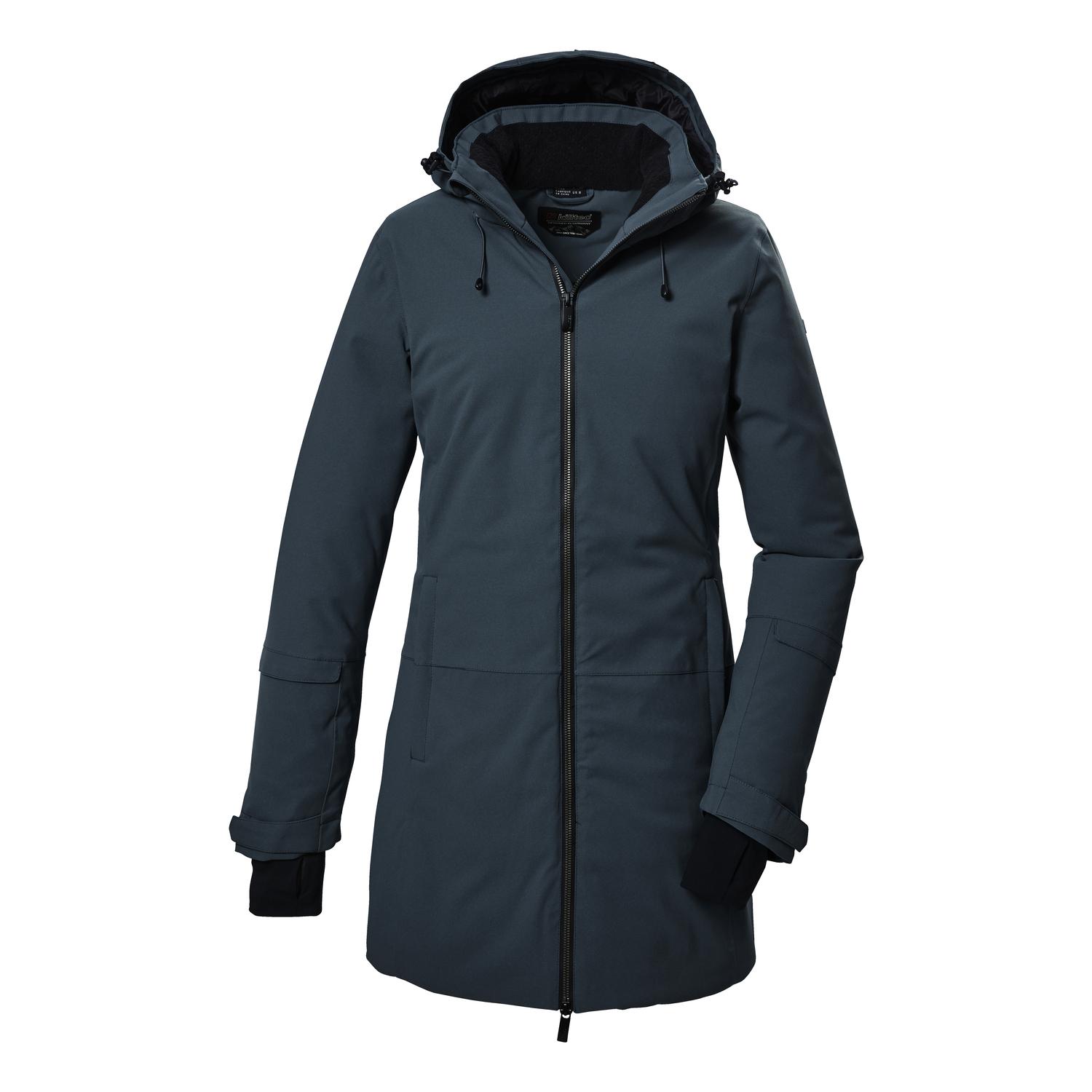 Damen Funktionsparka mit regulierbarer Kapuzeverschweißte Nähte, wasser- und winddicht (10.000 mm)atmungsaktiv (3.000 g/m²/24 h), winddicht2-Wege-Zipper, verstellbare ÄrmelbündchenPFAs-freie Imprägnierung, gut für dich und die UmweltName: KOW 307 WMN PRKSaison: Herbst/WinterDer moderne und zugleich zeitlose Funktionsparka von killtec begleitet zuverlässig durch die kalte Jahreszeit. Er ist durch verschweißte Nähte und mit einer 10.000 mm Wassersäule wasser- und winddicht und dabei auch atmungsaktiv (Unser Tipp: Damit die Wasserdichtigkeit erhalten bleibt, empfehlen wir, die Jacke ab und zu neu zu imprägnieren). Die Kapuze ist regulierbar. Der 2-Wege-Reißverschluss lässt sich von oben und unten öffnen und sorgt so für Bewegungsfreiheit. Zwei Seitentaschen und eine Handytasche im Inneren bieten genügend Stauraum. killtec liegt es besonders am Herzen, die Kollektionen nachhaltiger und zukunftsfähiger zu machen. So setzt killtec verstärkt auf verantwortungsbewusstere Herstellungsverfahren. Dieser Parka wurde daher mit fluorfreien Mitteln imprägniert wurde teilweise aus recyceltem Material hergestellt.
