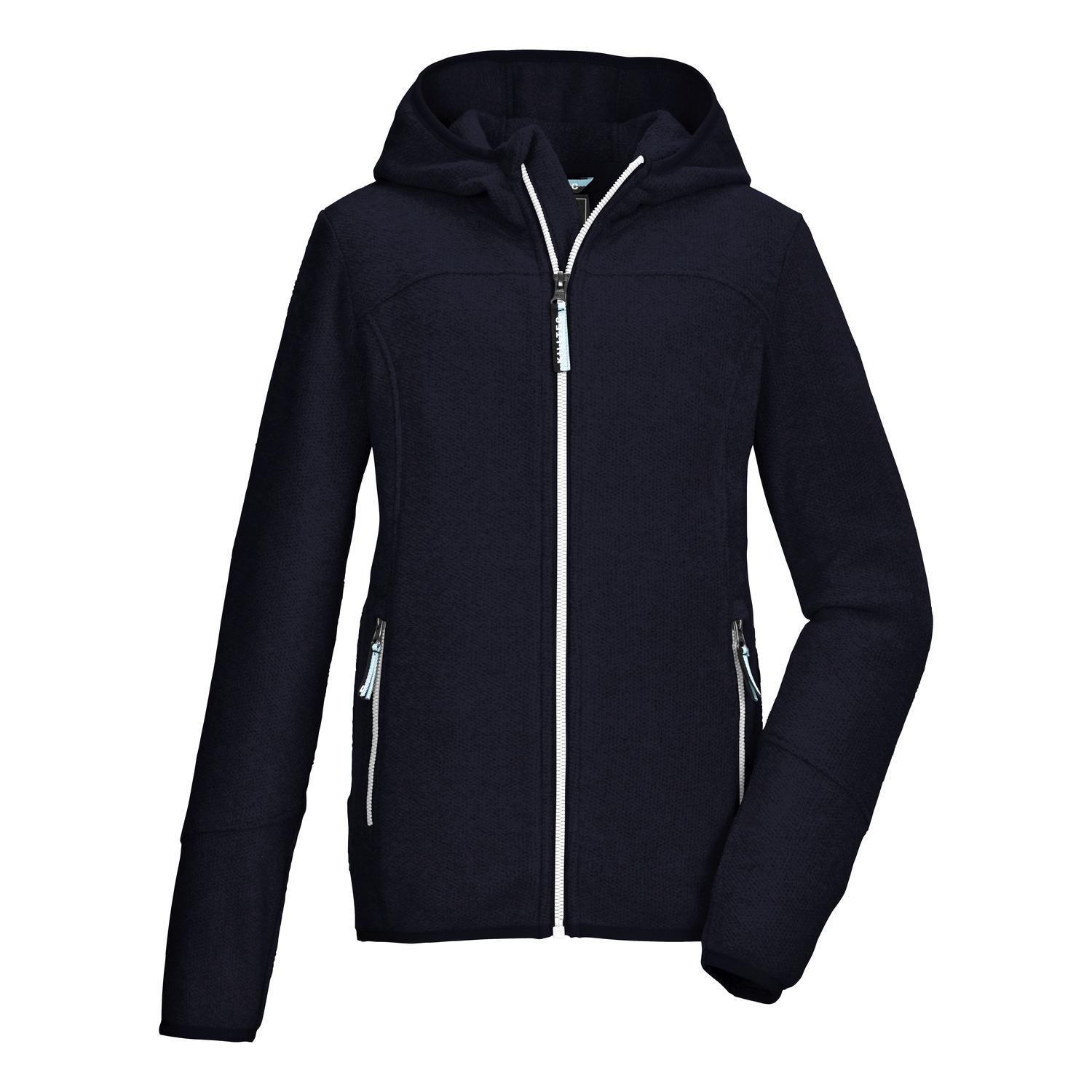 Kinder Strickfleecejackemit Kapuze, Ärmelbündchen und Saum elastischpraktische Taschen mit ZippernMelange Optikals Midlayer oder Übergangsjacke geeignetName: KOW 347 GRLS KNTFLC JCKTSaison: Herbst/WinterDie killtec Strickfleecejacke mit Kapuze in Melange Optik ist der perfekte Begleiter für die Kids in der kalten Jahreszeit. Die Ärmelbündchen und der Saum sind elastisch. Der Frontreißverschluss ist mit einem praktischen Kinnschutz versehen. Die zwei seitlichen Taschen lassen sich mit Zippern verschließen. Die Fleecejacke eignet sich als Midlayer unter der wetterfesten Jacke oder als leichte Übergangsjacke.