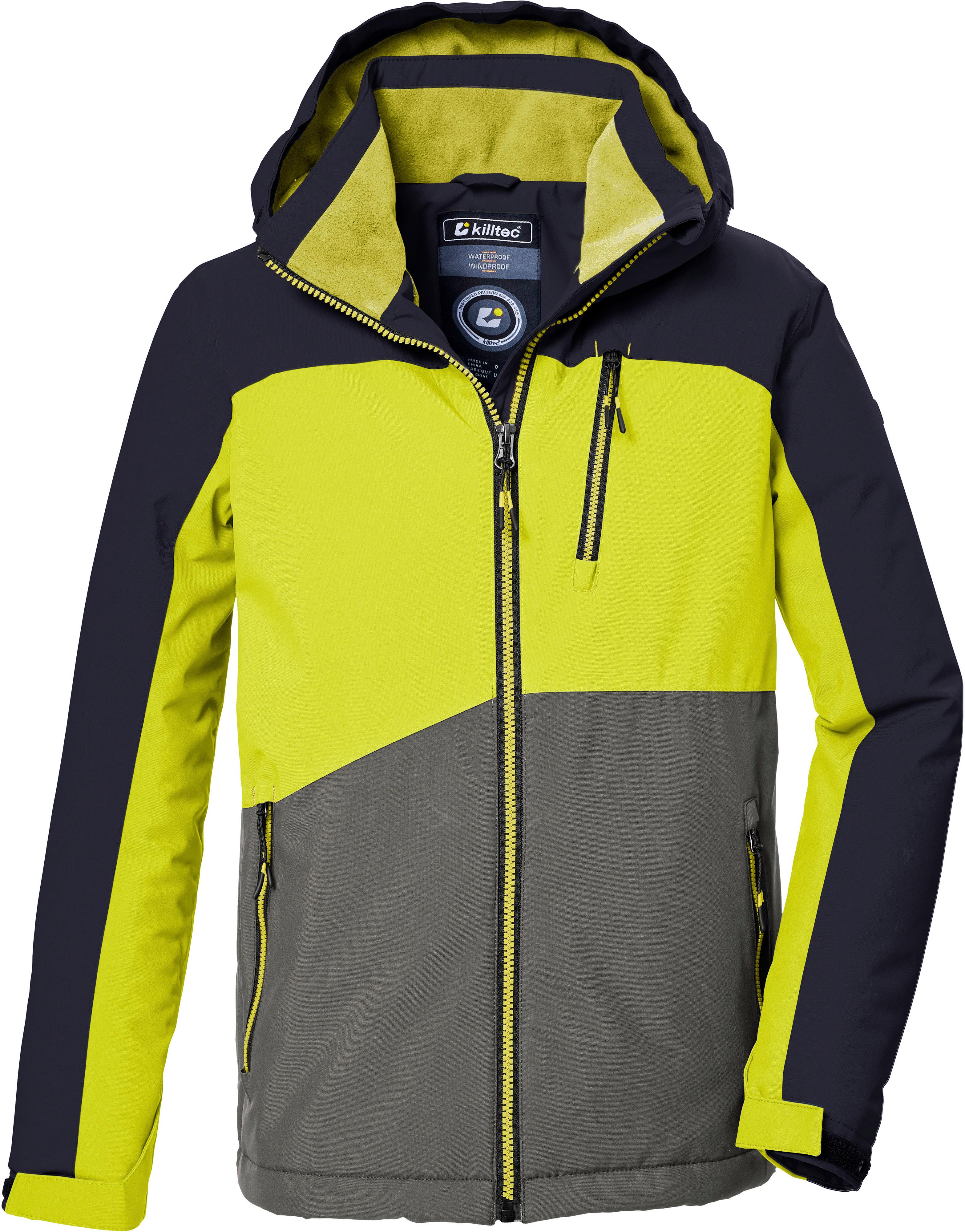 Wasserdichte Funktionsjacke mit Colourblock-Design; verschweißte Nähte; Wassersäule 10.000 mm; Frontreißverschluss mit Kinnschutz; feste, regulierbare Kapuze; verstellbare Ärmelbündchen; 2 Seitentaschen und 1 Brusttasche, jeweils mit Reißverschluss; integrierter Schneefang; wärmendes Fleece-Material im Innenbereich; fluorfrei imprägniert; Material 100% Polyester.