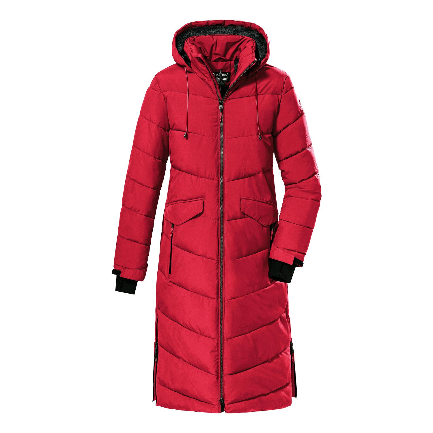 Damen Wintermantel in Daunenoptik mit regulierbarer Kapuze10.000 mm Wassersäule, wasser- und windabweisendatmungsaktiv, Wasserdampfdurchlässigkeit 3.000 g/m²/24 hPFAs-freie Imprägnierung und mit recycelter Füllung2-Wege-Zipper und seitliche ReißverschlüsseName: KOW 62 WMN QLTD CTSaison: Herbst/WinterDas zeitlose Design in Daunenoptik und die funktionalen Eigenschaften machen den Wintermantel von killtec zu einem zuverlässigen Begleiter. Der Mantel ist wasser- und windabweisend mit einer 10.000 mm Wassersäule. Gleichzeitig ist er atmungsaktiv mit einer Wasserdampfdurchlässigkeit von 3.000 g/m²/24 h. Das weiche Teddyfell im Inneren hält angenehm warm. Der 2-Wege- Reißverschluss und die seitlichen Reißverschlüsse sorgen für viel Bewegungsfreiheit. An den verstellbaren Ärmelabschlüssen befinden sich bequeme Strickbündchen, die das Eindringen von Wind und Kälte verhindern. Zwei Eingriffstaschen, verschlossen durch zwei praktische Magnete, zwei seitliche Zipper-Taschen sowie eine Innentasche bieten ausreichend Stauraum für alle wichtigen Dinge. Die weich gefütterte Kapuze lässt sich regulieren. killtec liegt es besonders am Herzen, die Kollektionen nachhaltiger und zukunftsfähiger zu machen. So setzt killtec verstärkt auf verantwortungsbewusstere Herstellungsverfahren. Dieser Wintermantel wurde daher mit fluorfreien Mitteln imprägniert und die Füllung besteht aus recyceltem Polyester.