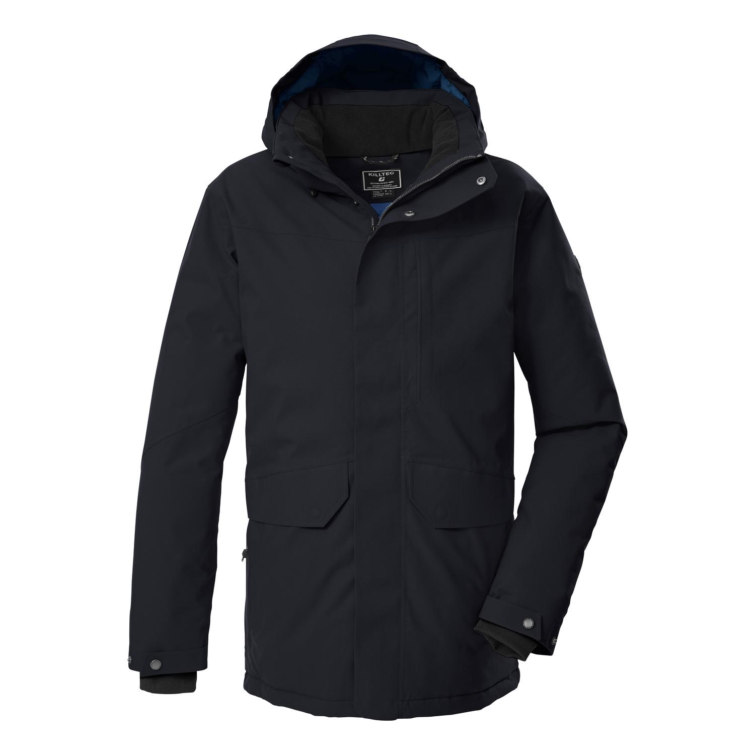 Herren Funktionsparka mit regulierbarer, abzippbarer Kapuze 10.000 mm Wassersäule, verschweißte Nähte, wasserdicht atmungsaktiv (3.000 g/m²/24 h) verdeckter 2-Wege-Reißverschluss mit Kinnschutz PFAs-freie Imprägnierung, teilweise aus recyceltem Material Innen-, Brust- und Seitentaschen, verstellbare Ärmelbündchen Name: KOW 85 MN PRK Saison: Herbst/Winter Der killtec Herren Winter-Funktionsparka besticht durch sein modernes Design und funktionale Eigenschaften. Er hat verschweißte Nähte und ist wasser- und winddicht mit einer 10.000 mm Wassersäule (Achtung: ab und zu sollte der Parka neu imprägniert werden). Gleichzeitig ist der Parka atmungsaktiv mit einer Wasserdampfdurchlässigkeit von 3.000 g/m²/24 h. Die Kapuze ist längenregulierbar und lässt sich bei Bedarf abzippen. Die Ärmelabschlüsse sind durch Klettverschlüsse verstellbar und mit bequemen Strickbündchen ausgestattet. Diverse Taschen bieten ausreichend Stauraum. Der verdeckte 2-Wege-Reißverschluss lässt sich von oben und unten öffnen und bietet so Bewegungsfreiheit. Zudem ist er mit einem Kinnschutz versehen. killtec liegt es besonders am Herzen, die Kollektionen nachhaltiger und zukunftsfähiger zu machen. So setzt killtec verstärkt auf verantwortungsbewusstere Herstellungsverfahren. Dieser Parka wurde daher PFAs-frei imprägniert und teilweise aus recyceltem Material hergestellt.