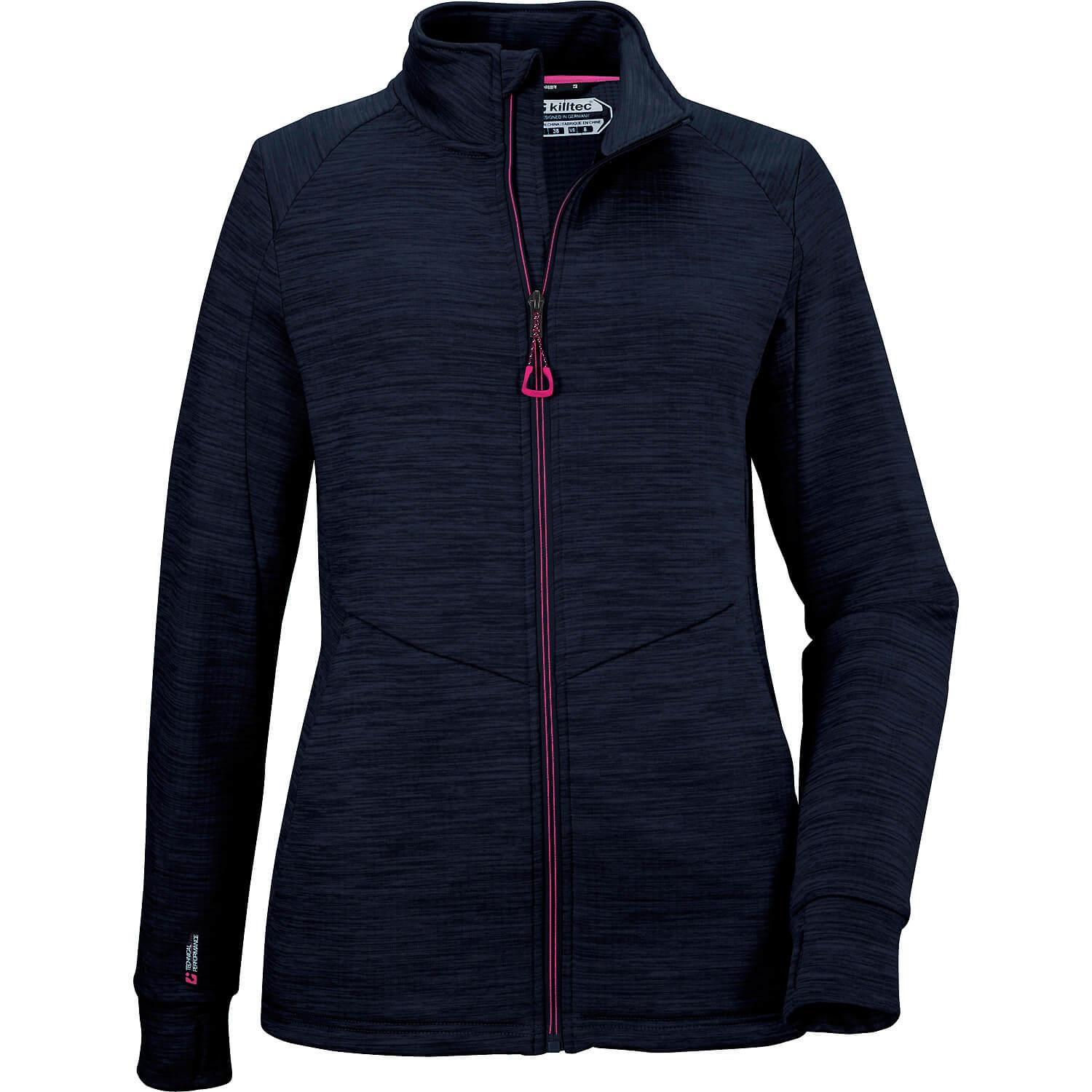 Stretchjacke KOW 97 WMN FLX JCKT von killtec - mit Stehkragen Kurzbeschreibung: Damen Powerstretchjacke mit Stehkragen Kategorie: Outer Layer Der Outer Layer ist im Zwiebelschalenprinzip die äußere Schicht deiner Funktionskleidung, die für den Schutz vor den Elementen zuständig ist. Die Powerstretchjacke von killtec in Melange Optik begleitet zuverlässig durch die kühlere Jahreszeit. Sie ist als Übergangsjacke oder als Midlayer unter der wetterfesten Jacke geeignet. Die Jacke ist mit Daumenschlaufen an den Ärmelbündchen, einem Stehkragen sowie drei praktischen Reißverschlusstaschen ausgestattet. Der Kinnschutz am Frontreißverschluss verhindert ein Einklemmen der Haut. Kontrastreiche Farbdetails ergänzen den sportiven Look. Melange Optik, kontrastreiche Farbdetails als Jacke oder Midlayer geeignet Ärmelbündchen mit Daumenschlaufen Taschen mit Zippern, Reißverschluss mit Kinnschutz Geschlecht: Damen Einsatzgebiete: Freizeit, Alltag, Outdoor killtec® - aus Leidenschaft für Sport und Outdoor ID:38587-000