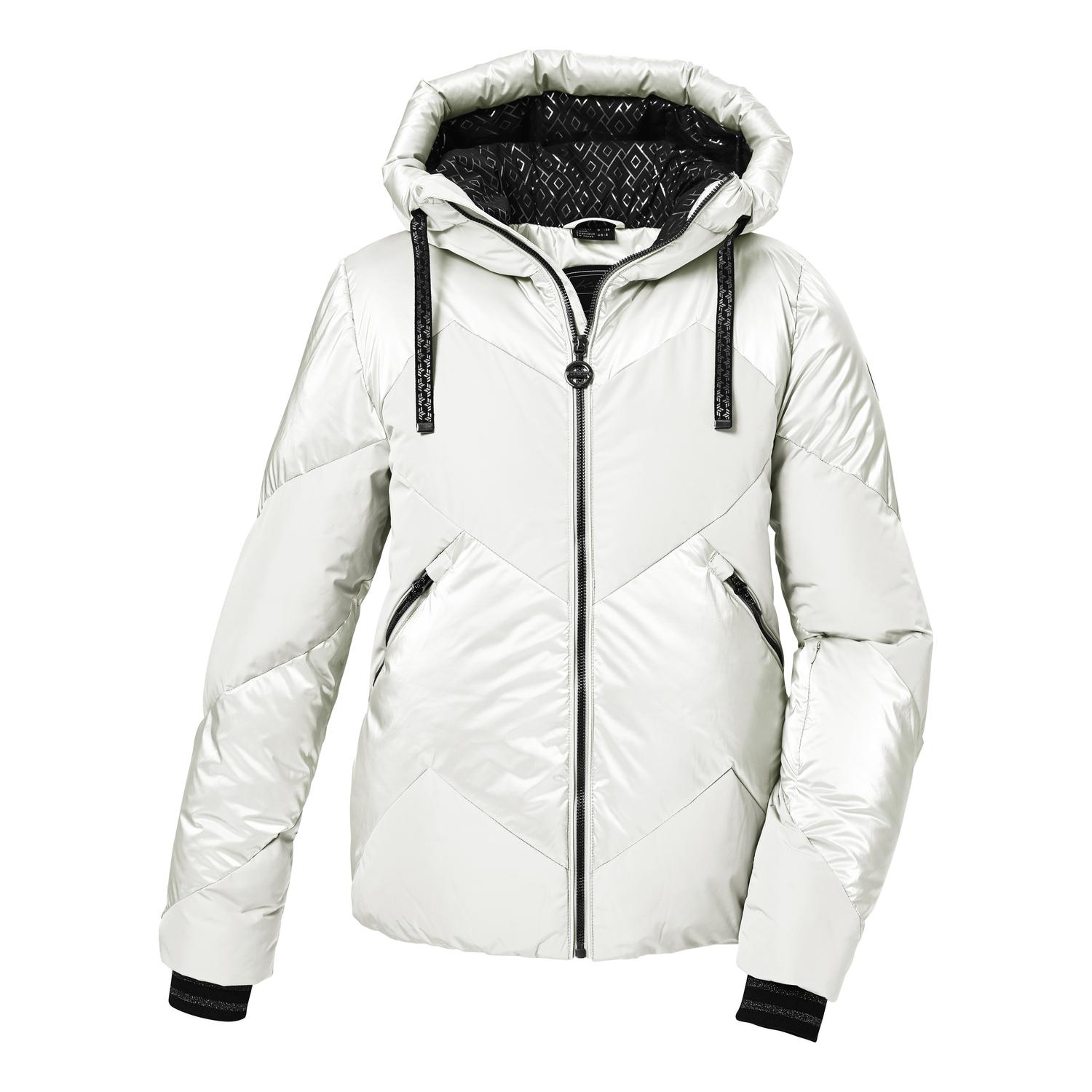 Damen Winterjacke in Daunenoptik mit abzippbarem Schneefangwinddicht, wasserabweisend (10.000 mm), atmungsaktivaufwendige Steppung, Matt-Glanz-OptikPFAs-freie Imprägnierung und aus recyceltem Materialdiverse praktische Taschen, Reißverschluss mit KinnschutzName: KSW 100 WMN SKI QLTD JCKTSaison: Herbst/WinterMit der killtec Damen Funktionsjacke in geht es mit Stil auf die Piste. Die aufwendige Steppung und die Matt-Glanz-Optik zeichnen diese Jacke aus. Sie ist winddicht und wasserabweisend mit einer Wassersäule von 10.000 mm und gleichzeitig atmungsaktiv. Die Jacke ist mit einem gummierten, rutschfesten Schneefang ausgestattet, der sich bei Bedarf abzippen lässt. Mehrere Taschen bieten genügend Stauraum für Skipass, Handy und Co. An den Ärmelabschlüssen befinden sich Lycracuffs mit Daumenlöchern, die das Eindringen von Wind in den Ärmel verhindern. Der Frontreißverschluss ist mit einem praktischen Kinnschutz ausgestattet. killtec liegt es besonders am Herzen, die Kollektionen nachhaltiger und zukunftsfähiger zu machen. So setzt killtec verstärkt auf verantwortungsbewusstere Herstellungsverfahren. Diese Jacke wurde daher mit fluorfreien Mitteln imprägniert und wurde teilweise aus recyceltem Material hergestellt.