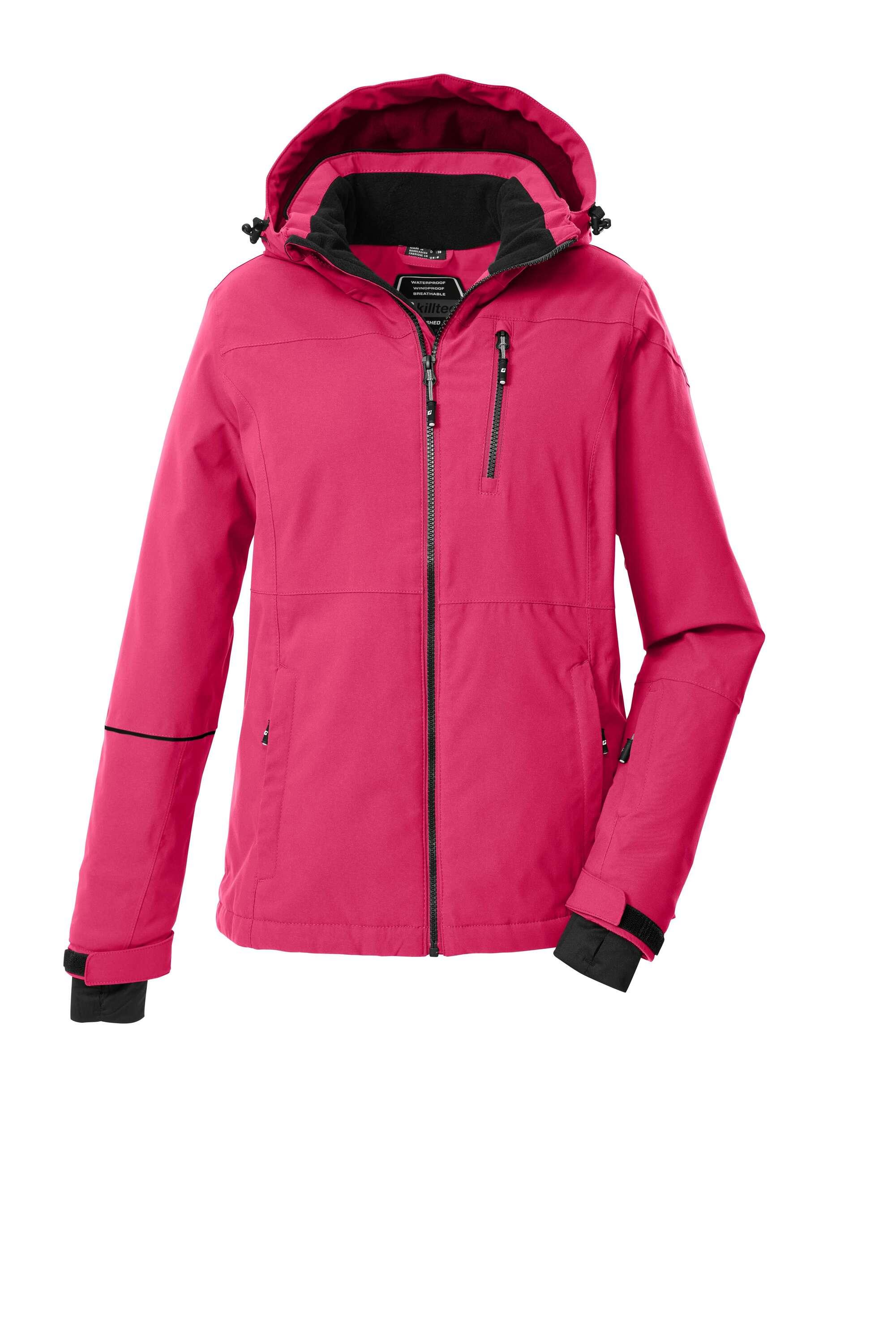 Mit der schlichten Damen Skijacke von killtec sind dem Wintersportvergnügen keine Grenzen gesetzt. Mit verschweißten Nähten ausgestattet, ist die Jacke wind- und wasserdicht (10.000 mm Wassersäule). Gleichzeitig ist die Jacke atmungsaktiv mit einer Wasserdampfdurchlässigkeit von 3.000 g/m²/24 h. Die Skijacke ist mit einem rutschfesten, gummierten Schneefang sowie verstellbaren Ärmelabschlüssen mit Lycracuffs ausgestattet. Der Reißverschluss ist mit einem Kinnschutz versehen. Zahlreiche Taschen bieten Platz für Skibrille, Skipass, Handy und Co. Zudem verfügt die Jacke im Innenbereich und in der Kapuze über ein warmes Fleece. Die Weite der Kapuze und des Saumes ist regulierbar. killtec liegt es besonders am Herzen, die Kollektionen nachhaltiger und zukunftsfähiger zu machen. So setzt killtec verstärkt auf verantwortungsbewusstere Herstellungsverfahren. Diese Jacke wurde daher PFAs-frei imprägniert. killtec liegt es besonders am Herzen, die Kollektionen nachhaltiger und zukunftsfähiger zu machen. So setzt killtec verstärkt auf verantwortungsbewusstere Herstellungsverfahren. Diese Funktionsjacke ist daher PFC-frei.