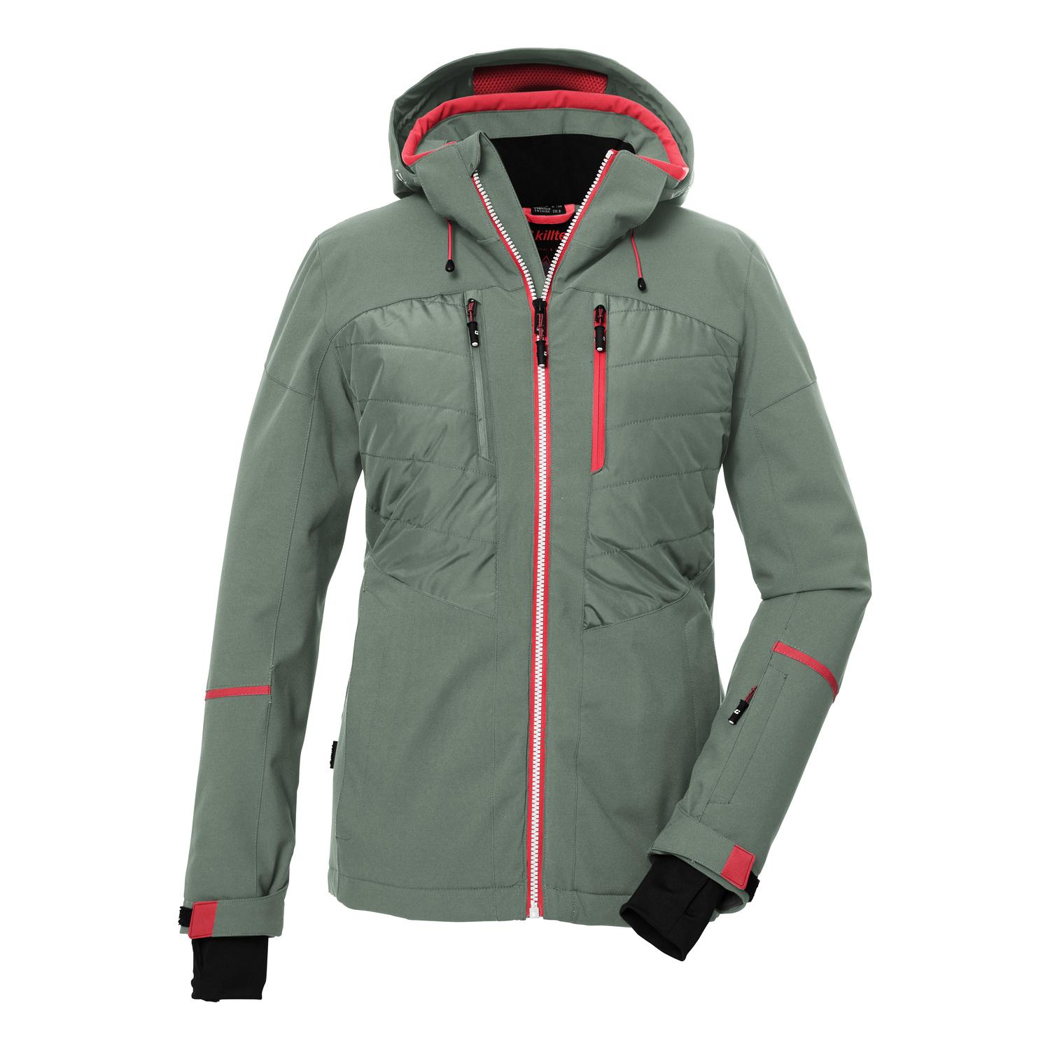 Damen Skijacke mit hochschließendem Kragen10.000 mm Wassersäule, verschweißte Nähte, 100% wasserdichtatmungsaktiv, Wasserdampfdurchlässigkeit 3.000 g/m²/24 hPFAs-freie Imprägnierung, gut für dich und die Umweltzahlreiche praktische TaschenName: KSW 86 WMN SKI JCKTSaison: Herbst/WinterBei der Skijacke von killtec erzeugen Fashion und Funktion eine sehenswerte Kombination. Hybridoptik kombiniert mit raffinierten Details machen sie zu einem echten Hingucker. Die Jacke ist atmungsaktiv mit einer Wasserdampfdurchlässigkeit von 3.000 g/m²/24 h. Sie hat verschweißte Nähte, wasserfeste Reißverschlüsse und ist mit einer 10.000 mm Wassersäule zu 100% wasser- und winddicht. Der hochschließende Kragen schützt vor Wind und Källte. Der Schneefang verhindert das Eindringen von Nässe in die Jacke. Der Front-Reißverschluss ist mit einem praktischen Kinnschutz ausgestattet. Zahlreiche Taschen bieten Platz für Skipass, Handy und Co. An den verstellbaren Armabschlüssen befinden sich Lycramanschetten mit Daumenlöchern, die das Eindringen von Wind verhindern. killtec liegt es besonders am Herzen, die Kollektionen nachhaltiger und zukunftsfähiger zu machen. So setzt killtec verstärkt auf verantwortungsbewusstere Herstellungsverfahren. Diese Funktionsjacke wurde daher mit fluorfreien Mitteln imprägniert.