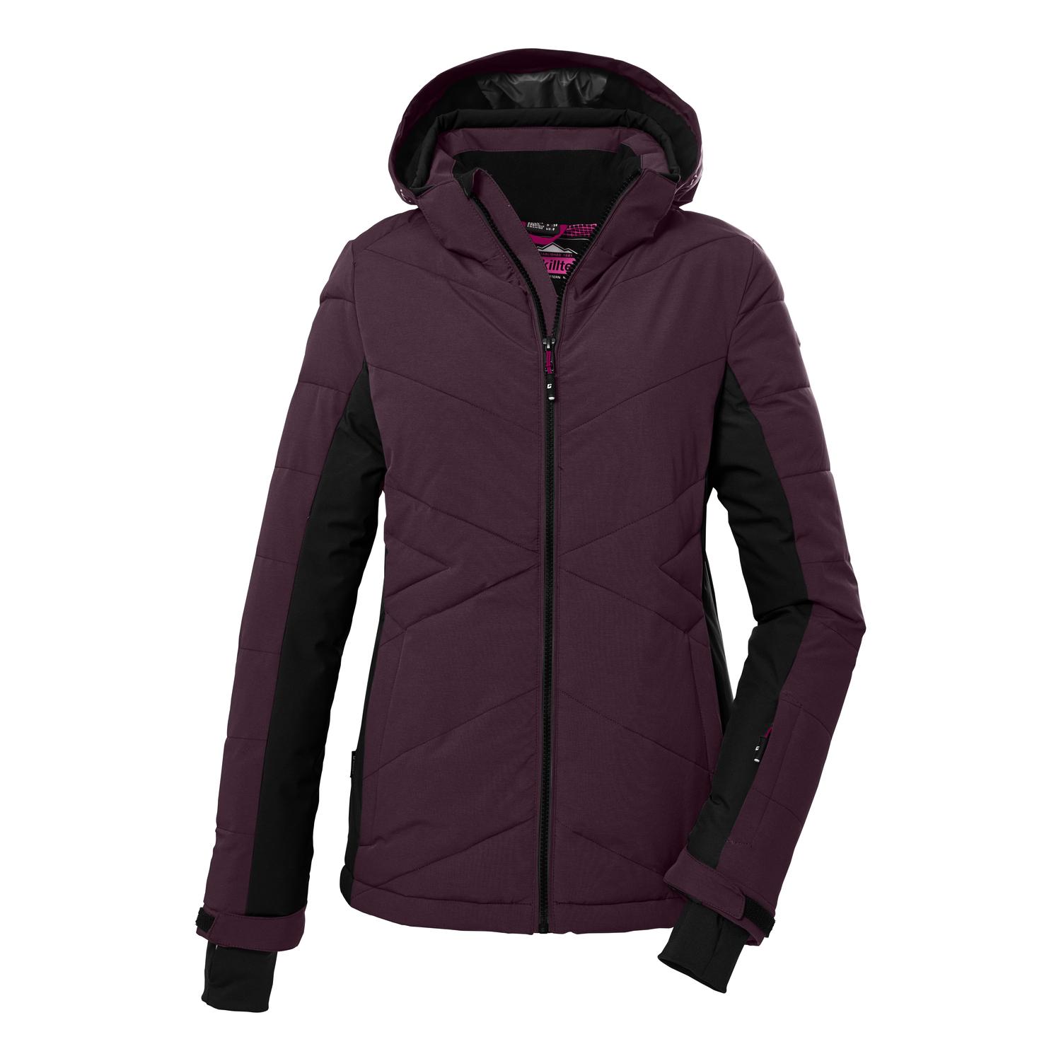Steppjacke mit Kapuze und hohem Kragenwinddicht, wasserabweisend, Wassersäule 10.000 mmatmungsaktiv, Wasserdampfdurchlässigkeit 3.000 g/m²/24 hColourblock Design, raffinierte Steppungverstellbare Ärmelbündchen mit LycracuffsName: KSW 89 WMN SKI QLTD JCKTSaison: Herbst/WinterMit der killtec Jacke in Daunenoptik mit hochschließendem Kragen kann der Winter kommen. Das Colourblock Design und die raffinierte Steppung machen die Jacke zu einem echten Hingucker. Die Jacke ist wasserabweisend und winddicht mit einer Wassersäule von 10.000 mm und gleichzeitig atmungsaktiv. Der Reißverschluss hat einen praktischen Kinnschutz, um ein Einklemmen der Haut zu verhindern. Zwei Seitentaschen und eine Ärmeltasche bieten Stauraum für Handy, Skipass und Co. An den mit Klett verstellbaren Armabschlüssen befinden sich Elasthan-Manschetten mit Daumenlöchern. killtec ist ständig bestrebt, die Kollektionen nachhaltiger und zukunftsfähiger zu machen. So setzt killtec verstärkt auf verantwortungsbewusstere Herstellungsverfahren. Diese Jacke wurde daher mit fluorfreien Mitteln imprägniert.