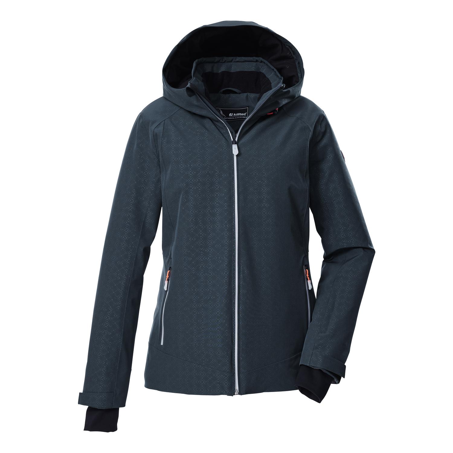 Damen Skijacke mit rutschfestem Schneefang 10.000 mm Wassersäule, verschweißte Nähte, wasserdicht atmungsaktiv, Wasserdampfdurchlässigkeit 3.000 g/m²/24 h Kapuze und Saum regulierbar verstellbare Ärmelbündchen mit Lycracuffs Seitentaschen, Skipass-, Skibrillen- und Innentasche All Over-Print Name: KSW 33 WMN SKI JCKT Saison: Herbst/Winter Mit der Damen Skijacke von killtec kann der Pistenspaß beginnen. Die Jacke überzeugt durch ihren dezenten All Over-Print und viele praktische Features. Sie ist atmungsaktiv mit einer Wasserdampfdurchlässigkeit von 3.000 g/m²/24 h. Sie hat verschweißte Nähte, wasserdichte Zipper und ist wasser- und winddicht mit einer 10.000 mm Wassersäule (Unser Tipp: ab und zu sollte die Jacke neu imprägniert werden). Der Schneefang mit rutschfester Gummierung schützt vor dem Eindringen von Nässe. Das Innenfutter hält zusätzlich warm. Zahlreiche Taschen bieten Platz für Skipass, Skibrille und Co. Der Saum und die Kapuze lassen sich individuell regulieren. An den verstellbaren Armabschlüssen befinden sich bequeme Lycracuffs mit Daumenlöchern. killtec liegt es besonders am Herzen, die Kollektionen nachhaltiger und zukunftsfähiger zu machen. So setzt killtec verstärkt auf verantwortungsbewusstere Herstellungsverfahren. Diese Jacke wurde daher PFAs-frei imprägniert und teilweise aus recyceltem Material hergestellt.