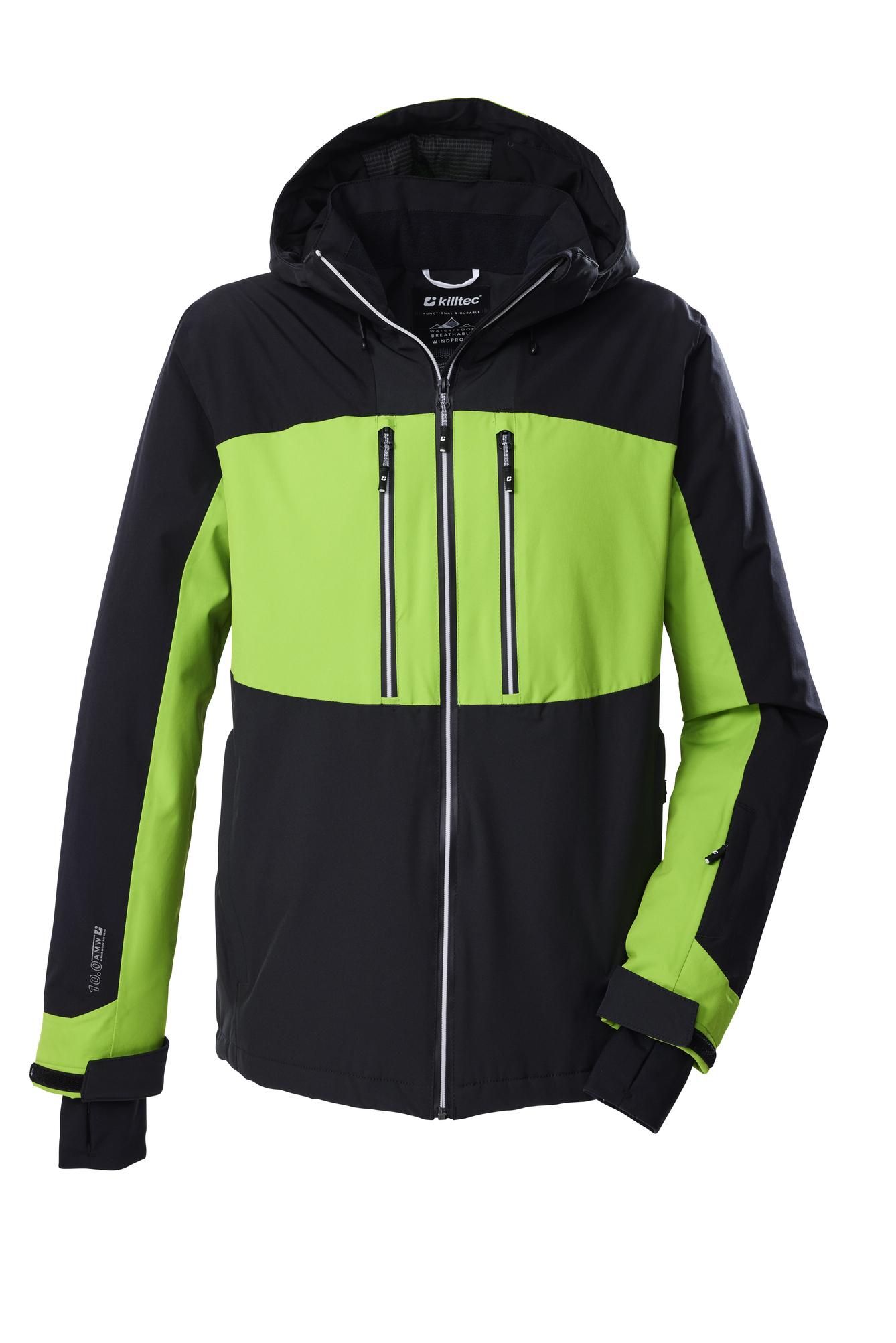 Die Herren Skijacke von killtec verbindet angesagtes Colourblock Design mit pistentauglichen Features. Sie ist durch die verschweißte Nähte und mit einer Wassersäule von 10.000 mm wind- und wasserdicht (Unser Tipp: ab und zu sollte die Jacke neu imprägniert werden). Gleichzeitig ist sie atmungsaktiv mit einer Wasserdampfdurchlässigkeit von 5.000 g/m²/24 h. Innen ist die Jacke mit einem rutschfesten Schneefang, einer einer Handytasche ausgestattet. Vier Zippertaschen außen und eine Skipasstasche bieten weiteren Stauraum. Die Weite der Kapuze und des Saumes lässt sich individuell regulieren, zudem lässt sich die Kapuze abzippen. Lycracuffs mit Daumenlöchern an den verstellbaren Ärmelabschlüssen verhindern das Eindringen von Kälte und Wind. killtec liegt es besonders am Herzen, die Kollektionen nachhaltiger und zukunftsfähiger zu machen. So setzt killtec verstärkt auf verantwortungsbewusstere Herstellungsverfahren. Diese Jacke wurde daher PFAs-frei imprägniert.