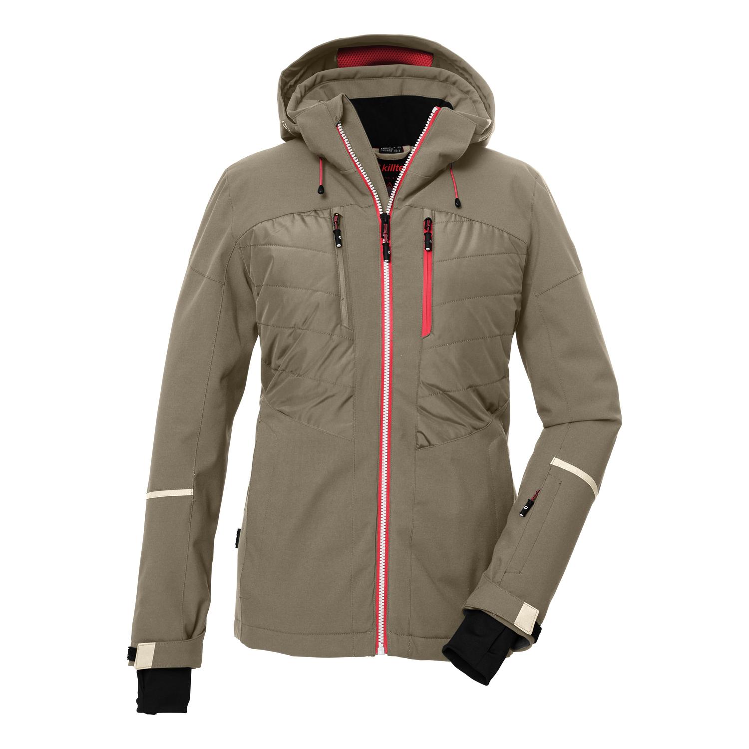 Damen Skijacke mit hochschließendem Kragen10.000 mm Wassersäule, verschweißte Nähte, 100% wasserdichtatmungsaktiv, Wasserdampfdurchlässigkeit 3.000 g/m²/24 hPFAs-freie Imprägnierung, gut für dich und die Umweltzahlreiche praktische TaschenName: KSW 86 WMN SKI JCKTSaison: Herbst/WinterBei der Skijacke von killtec erzeugen Fashion und Funktion eine sehenswerte Kombination. Hybridoptik kombiniert mit raffinierten Details machen sie zu einem echten Hingucker. Die Jacke ist atmungsaktiv mit einer Wasserdampfdurchlässigkeit von 3.000 g/m²/24 h. Sie hat verschweißte Nähte, wasserfeste Reißverschlüsse und ist mit einer 10.000 mm Wassersäule zu 100% wasser- und winddicht. Der hochschließende Kragen schützt vor Wind und Källte. Der Schneefang verhindert das Eindringen von Nässe in die Jacke. Der Front-Reißverschluss ist mit einem praktischen Kinnschutz ausgestattet. Zahlreiche Taschen bieten Platz für Skipass, Handy und Co. An den verstellbaren Armabschlüssen befinden sich Lycramanschetten mit Daumenlöchern, die das Eindringen von Wind verhindern. killtec liegt es besonders am Herzen, die Kollektionen nachhaltiger und zukunftsfähiger zu machen. So setzt killtec verstärkt auf verantwortungsbewusstere Herstellungsverfahren. Diese Funktionsjacke wurde daher mit fluorfreien Mitteln imprägniert.