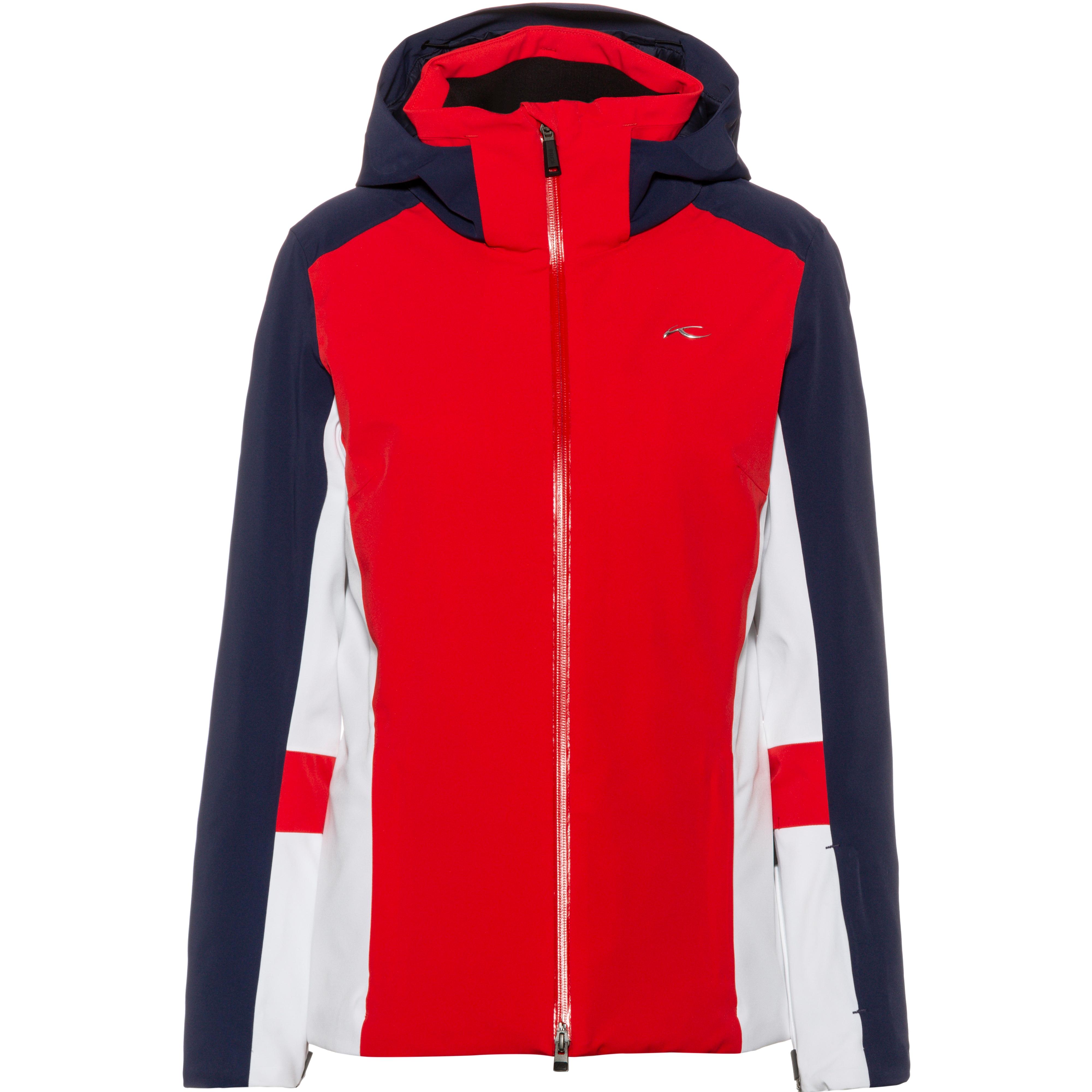 Skijacke im Colorblock-Design mit wärmender Isolierung aus 4-Wege-Stretch Material; gefütterter Stehkragen mit Kinnschutz; abnehmbare und verstellbare Kapuze; durchgehender und unterlegter Frontreißverschluss; 2 verdeckte Seitentaschen mit Reißverschluss; 1 Liftpasstasche; 1 Innentasche mit Reißverschluss; 2 Netz-Innentaschen; verstellbarer Ärmelsaum mit Reißverschluss und integrierten Gamaschen mit Daumenloch; integrierter Schneefang mit Antirutschgummi; Stopper im Saum; Wassersäule 10.000 mm; Logo-Detail; Material 85% Polyamid, 15% Elastan; Isolierung 100% Polyester.