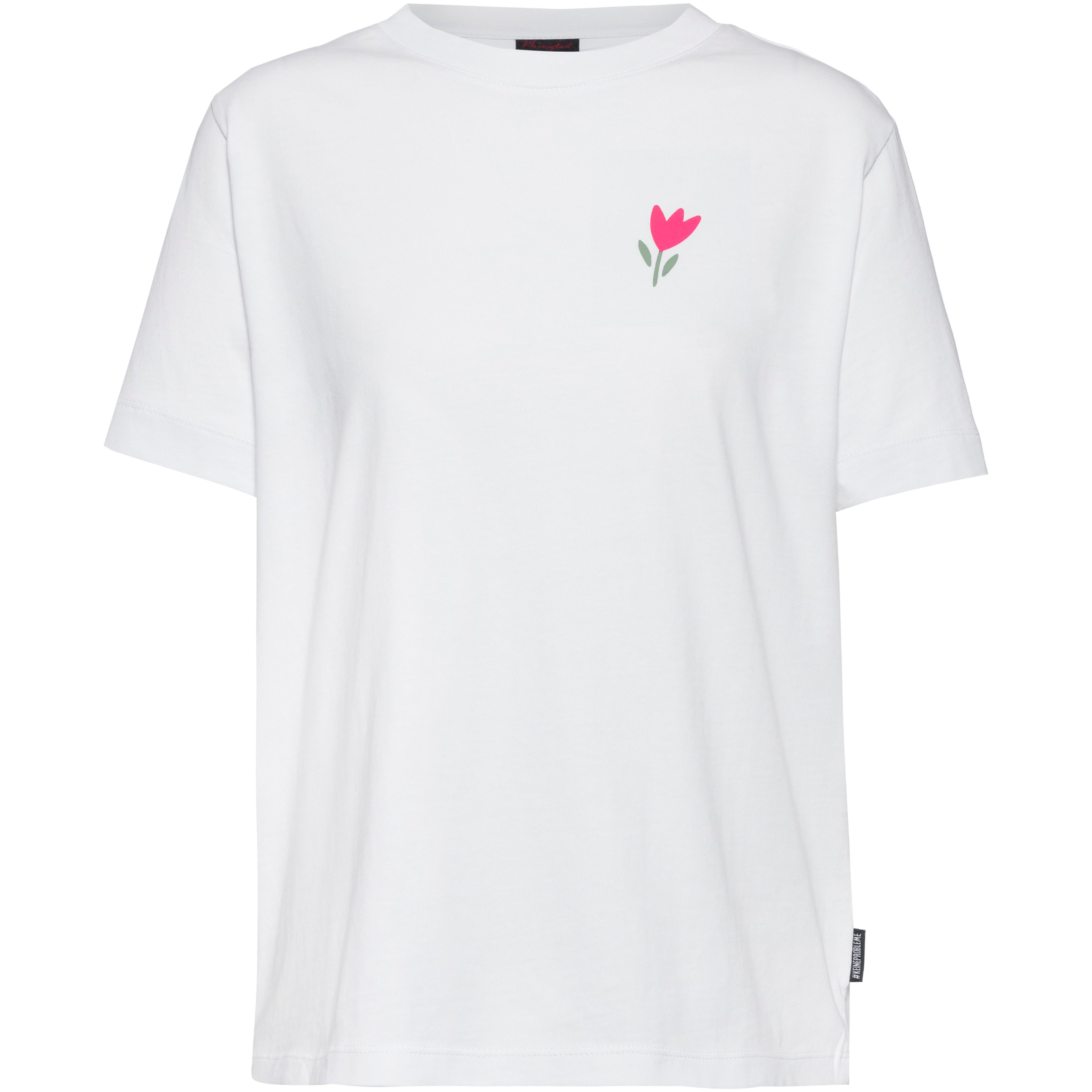 T-Shirt mit Rundhalsausschnitt; kleiner Print auf der Front und großer Print im Rückenbereich; Material 100% Baumwolle.