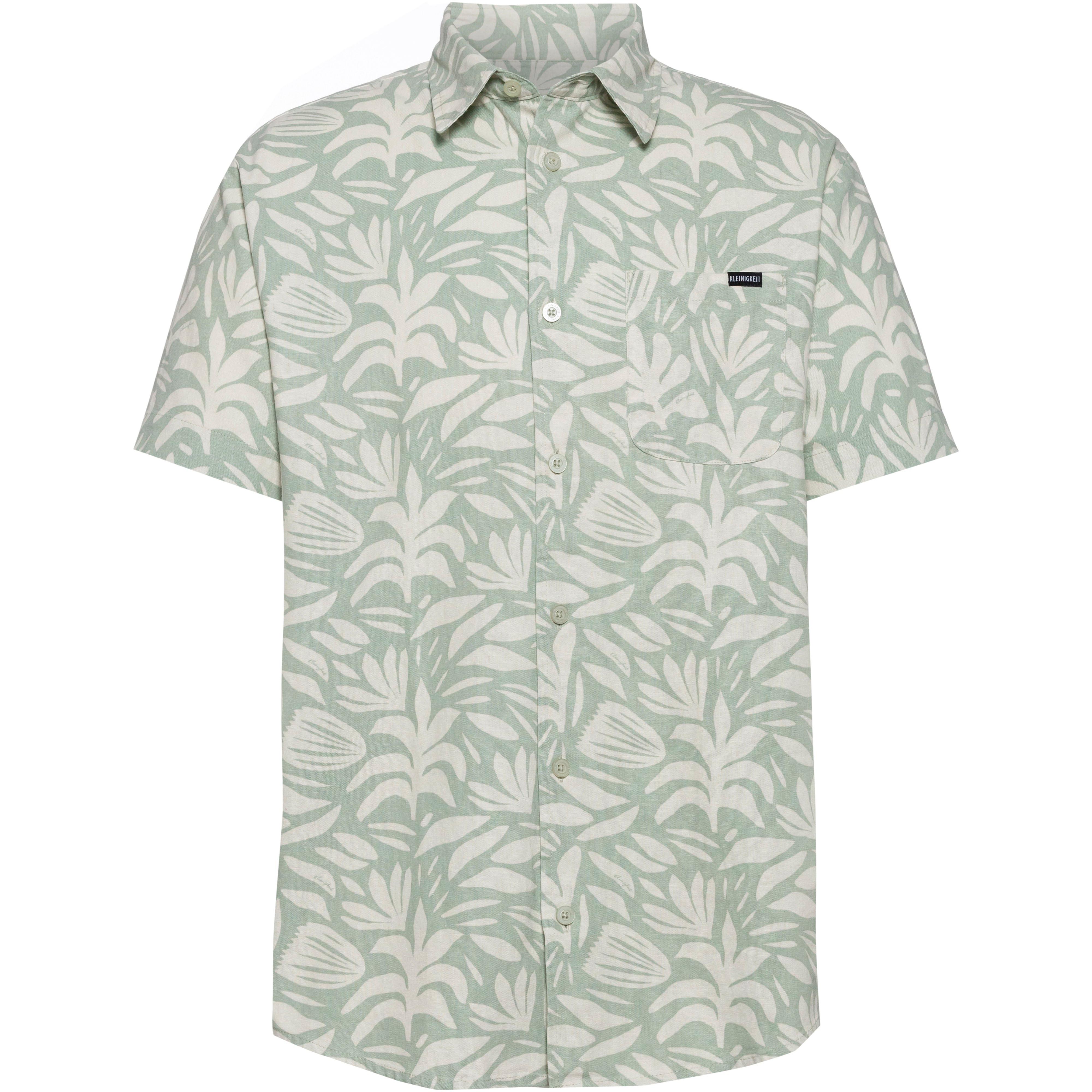 Kurzarmhemd mit sommerlichem Allover-Print; atmungsaktive Baumwoll-Leinen-Mischung; klassischer Kragen; durchgehende Knopfleiste; 1 Brusttasche mit Logodetail; abgerundeter Saum; lockere Passform; Material 70% Baumwolle, 30% Leinen.