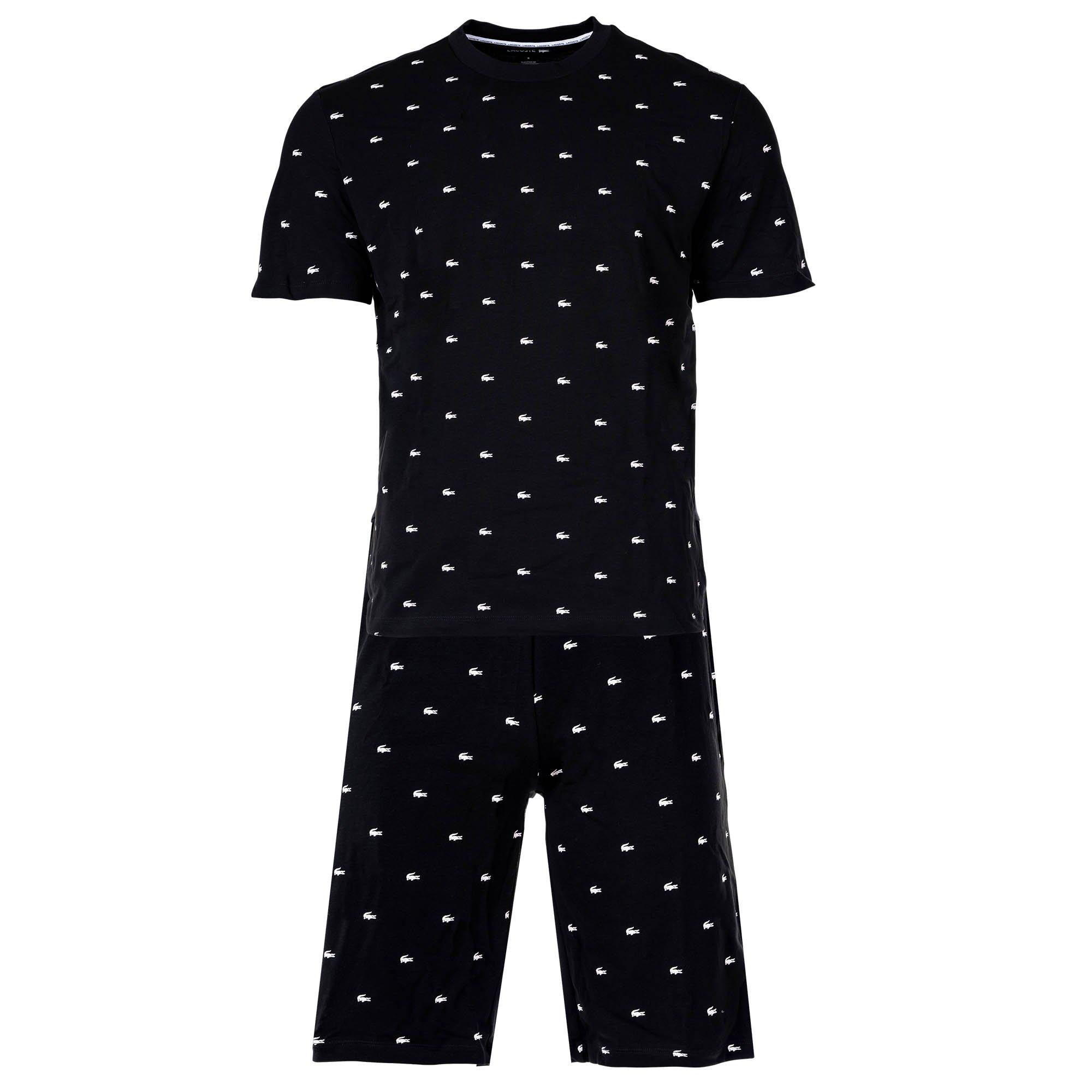 LACOSTE Herren Set Pyjama Loungewear mit Kurzarm Shirt und Shorts aus Jersey. Der Herren Schlafanzug aus der Classique Lacoste Kollektion mit dezentem Allover Mini Croc Print hat einen bequemen Schnitt und ist hochwertig verarbeitet.