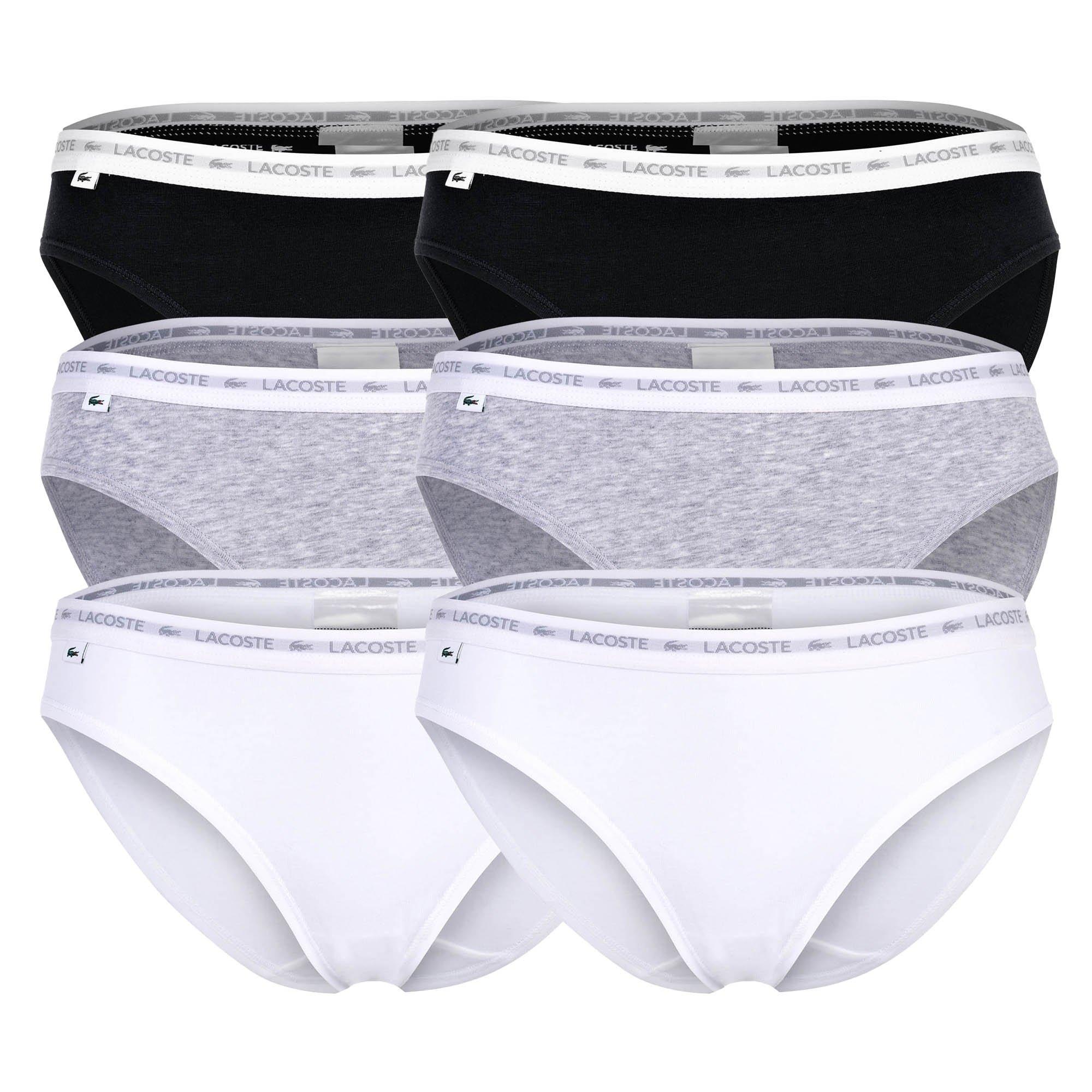 LACOSTE Damen Slips im praktischen 6er Pack. Einfarbige Jersey Slips mit bequemen Logobund. Besonders hoher Tragekomfort dank weicher Bauwollmischung mit Stretch.