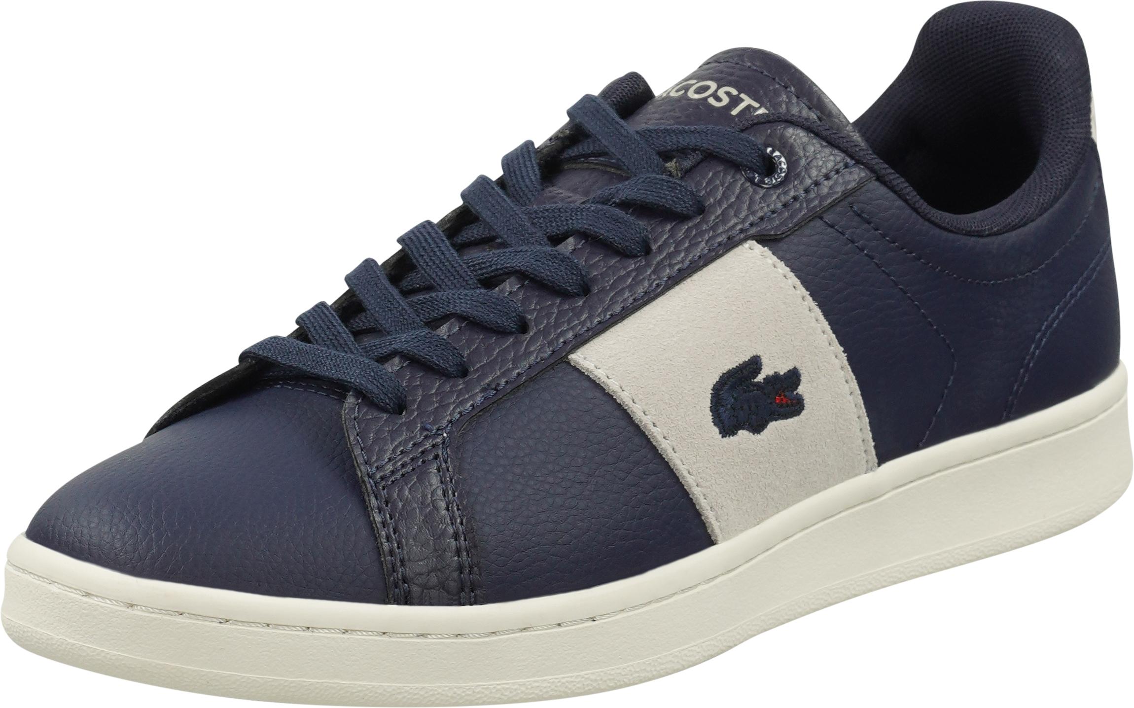 Wunderschön klassischer und modischer Sneaker von Lacoste, der mit herausragender Qualität und hochwertigem Leder entzücken kann. Einher kommt dieser schlichte Schuh mit einem coolen Materialmix.