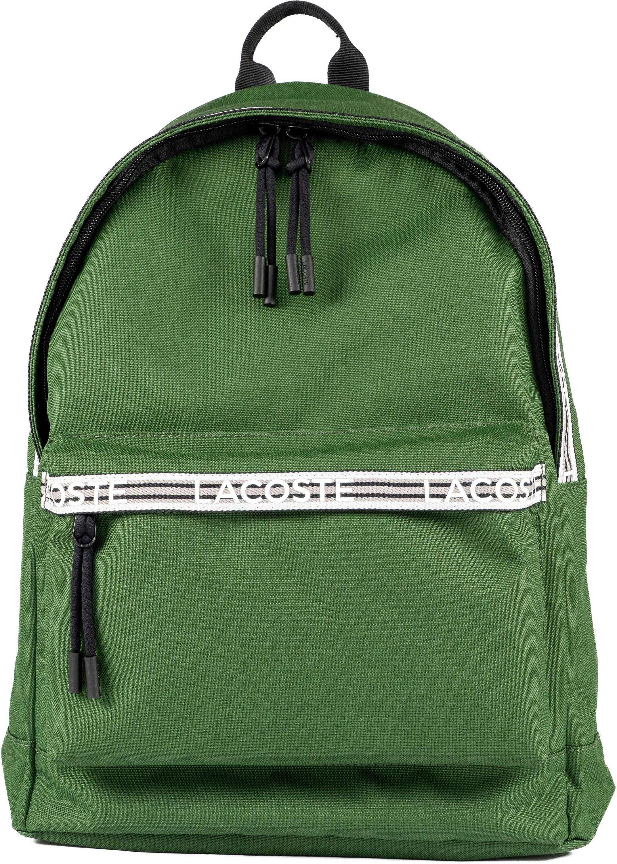 Dieser moderne Rucksack von Lacoste kommt im schlichten Design und Marken-Schriftzug daher. Die zusätzliche Fronttasche bietet genügend Stauraum für kleine Utensilien. Maße: 40 cm x 36 cm x 10 cm