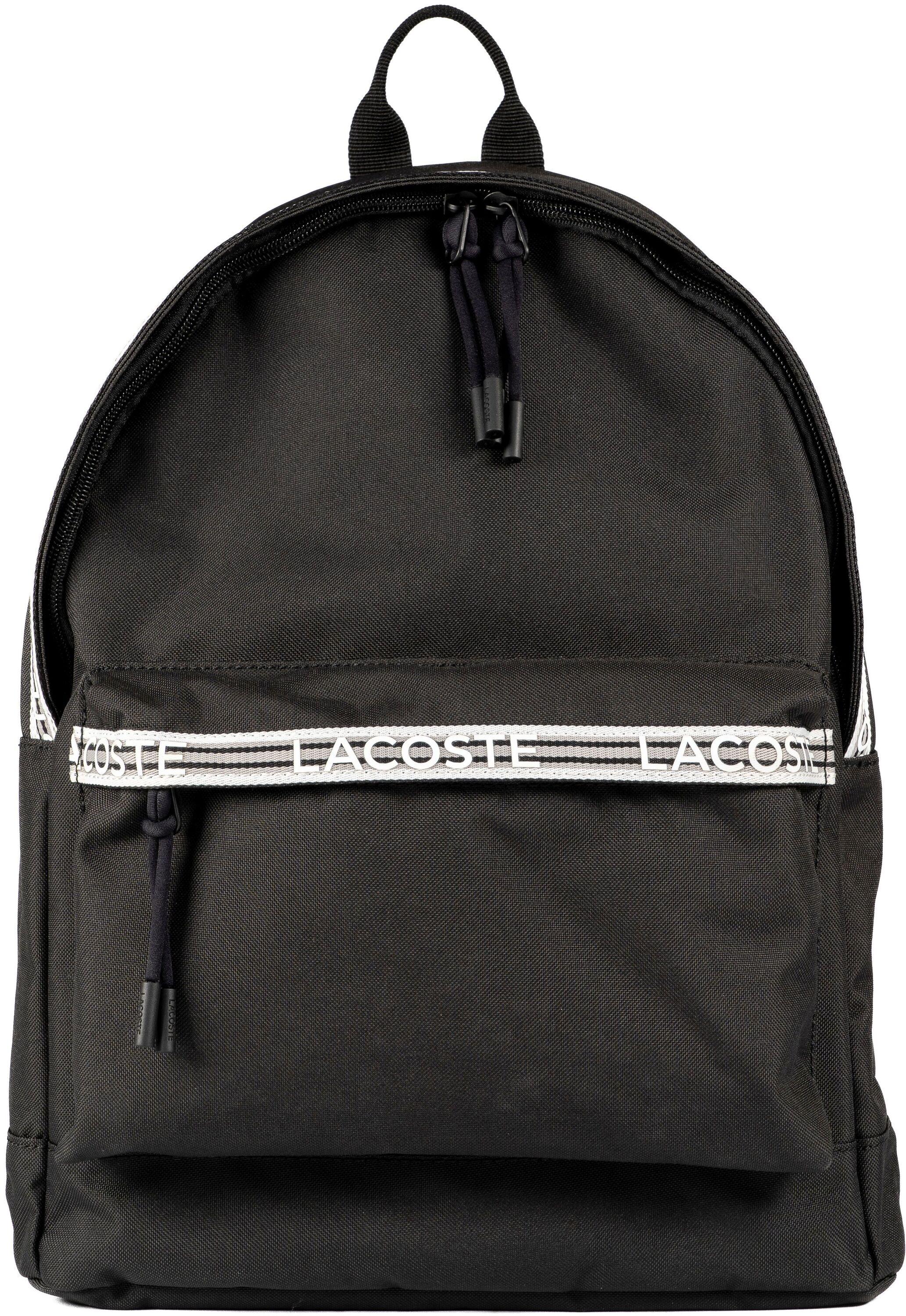 Dieser moderne Rucksack von Lacoste kommt im schlichten Design und Marken-Schriftzug daher. Die zusätzliche Fronttasche bietet genügend Stauraum für kleine Utensilien. Maße: 40 cm x 36 cm x 10 cm