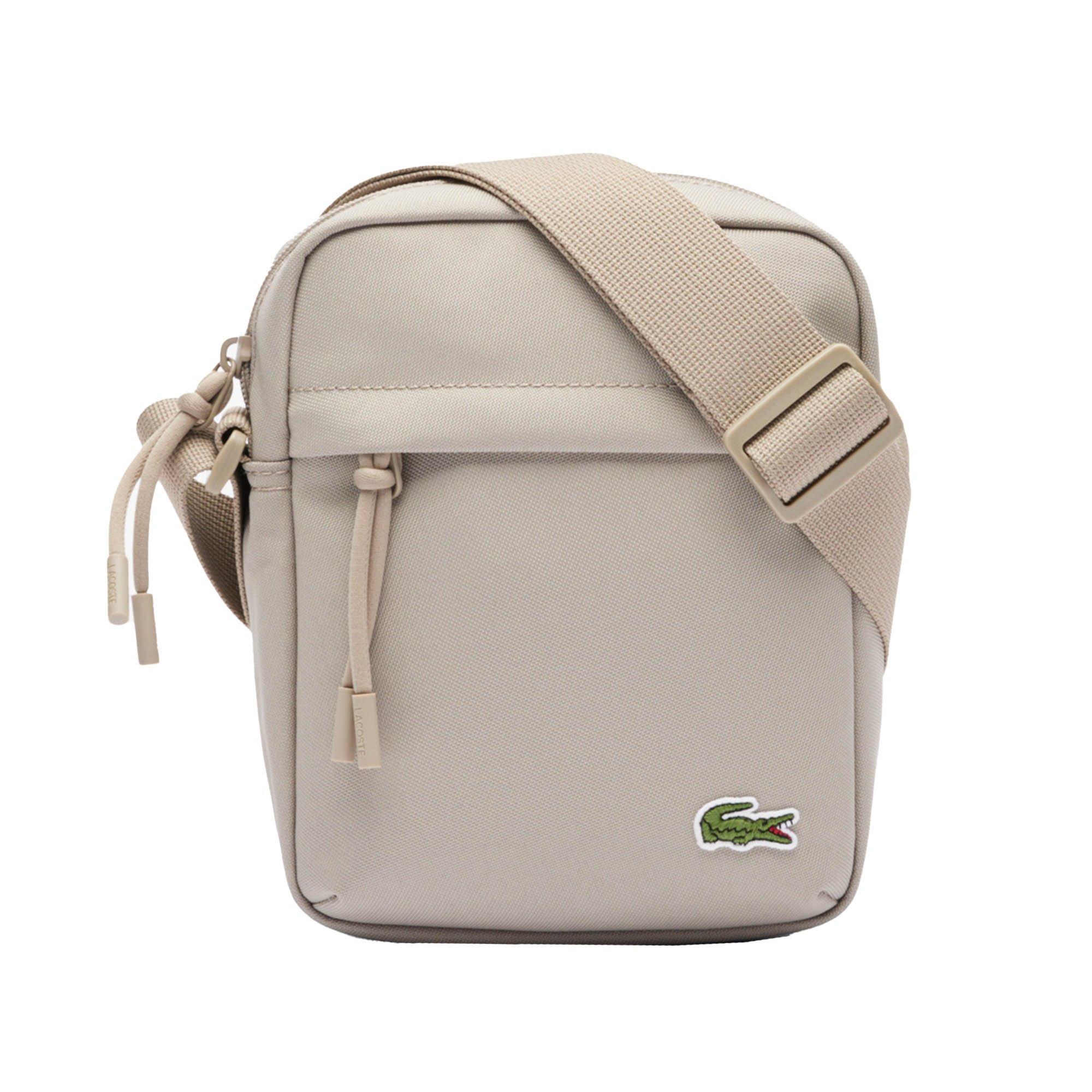 Stylische Umhängetasche für Damen und Herren aus recyceltem Polyester. Funktionale Fächeraufteilung mit Reißverschluss. Markentypisches Lacoste Krokodil-Logo.