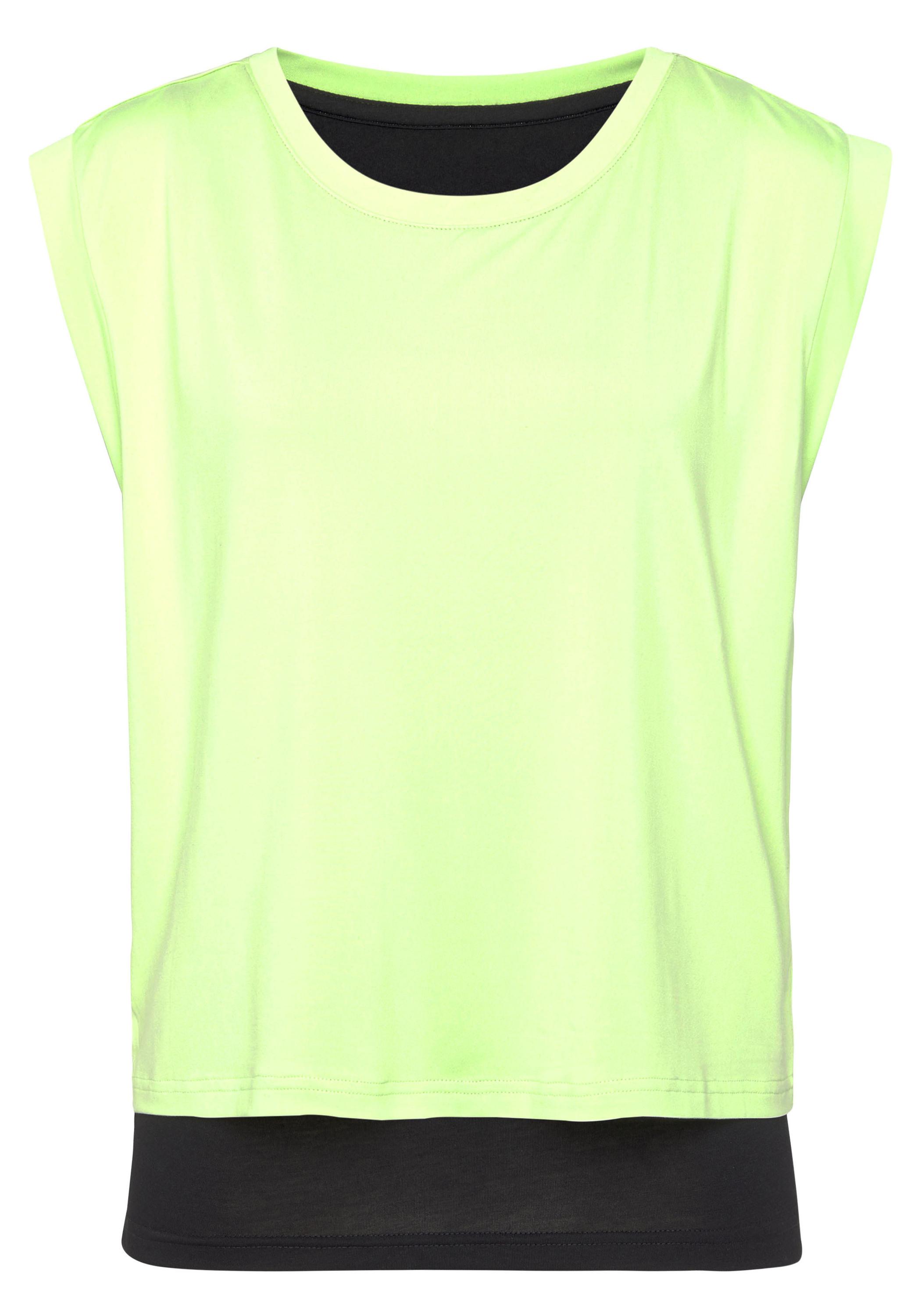 Performance-Shirt von Lascana Active. Luftdurchlässiges Burnout-Shirt mit integriertem Überziehshirt. Crewneck und extrakurze Ärmel mit Bündchen. Lagen-Look. Lässiger Schnitt. Atmungsaktives Burnout-Material.
