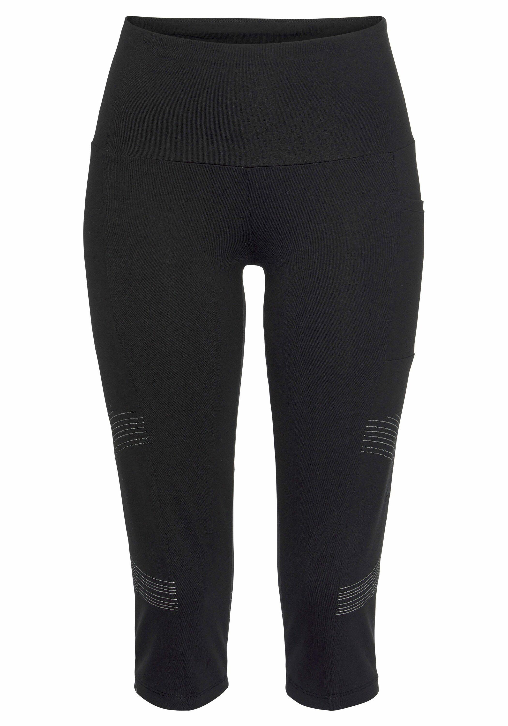 Caprileggings von Lascana Active aus hautsympatischer, elastischer Baumwollmischung. Mit optischem Reflektorprint und breitem, elastischem Bund. Weitere Details: Mit Tasche am Bein und einem reflektierenden Logodetail hinten. Aus 95% Baumwolle, 5% Elasthan.