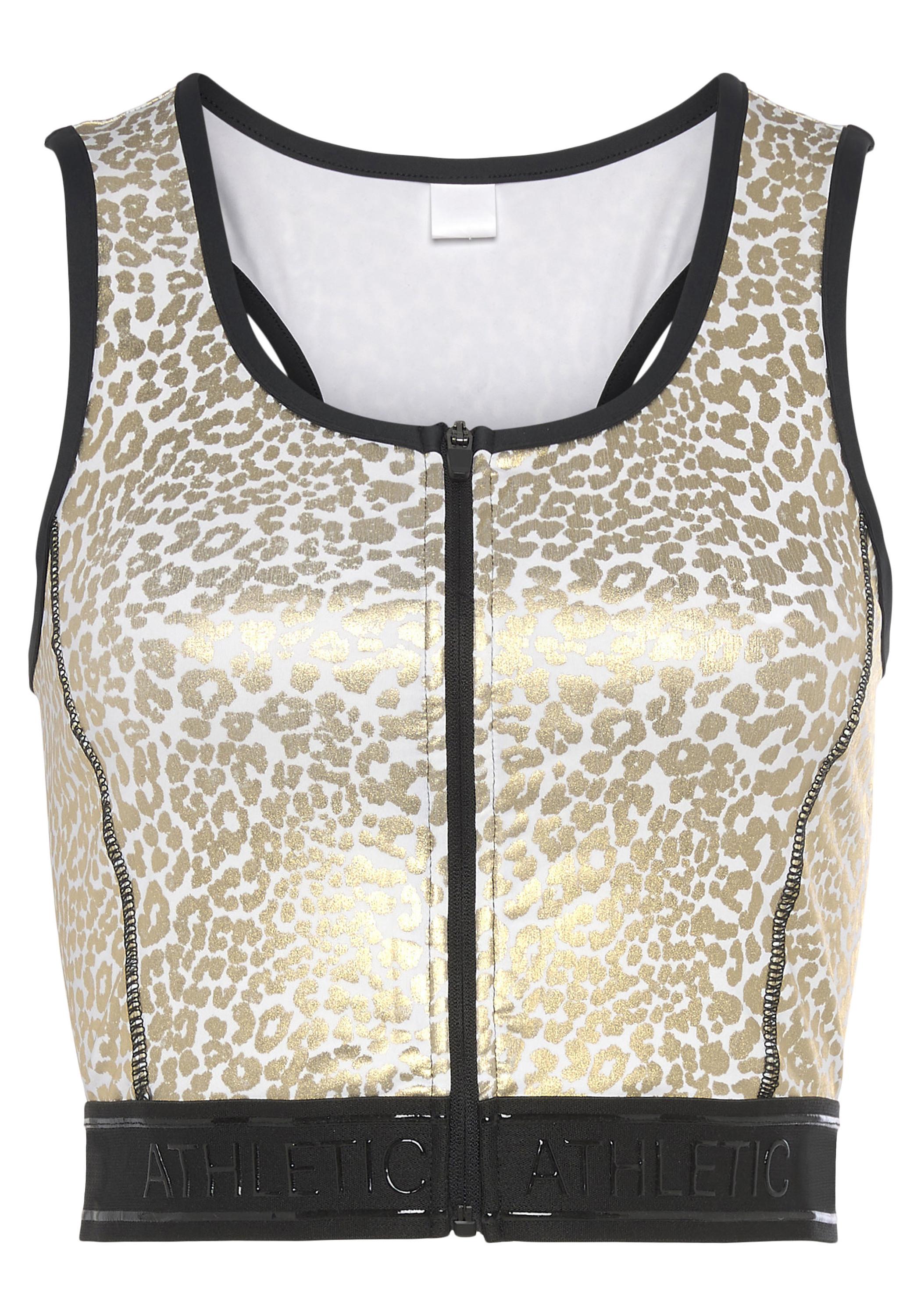 Sport-Crop-Top von Lascana Active für Damen. Im bauchfreien Stil. Mit Reißverschluss vorn. Mit Leoprint. Elastisches Bündchen mit Print. Atmungsaktive, elastische Qualität.