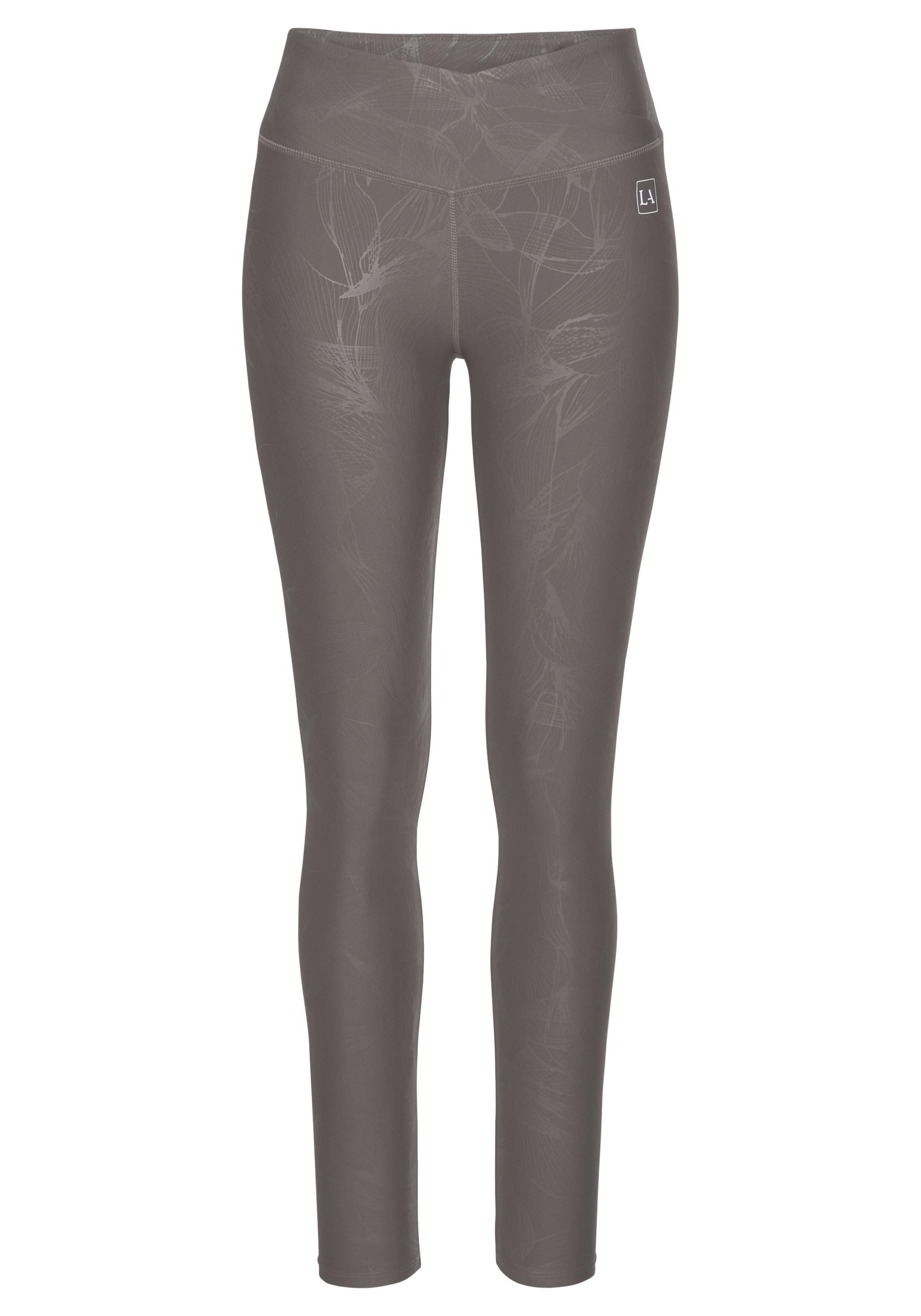Stylische Performance-Leggings von Lascana Active. Mit schimmerndem, dezentem Alloverprint. Logodruck. Elastischer, v-förmig überlappender Bund für einen guten Sitz. Elastische, atmungsaktive Qualität.