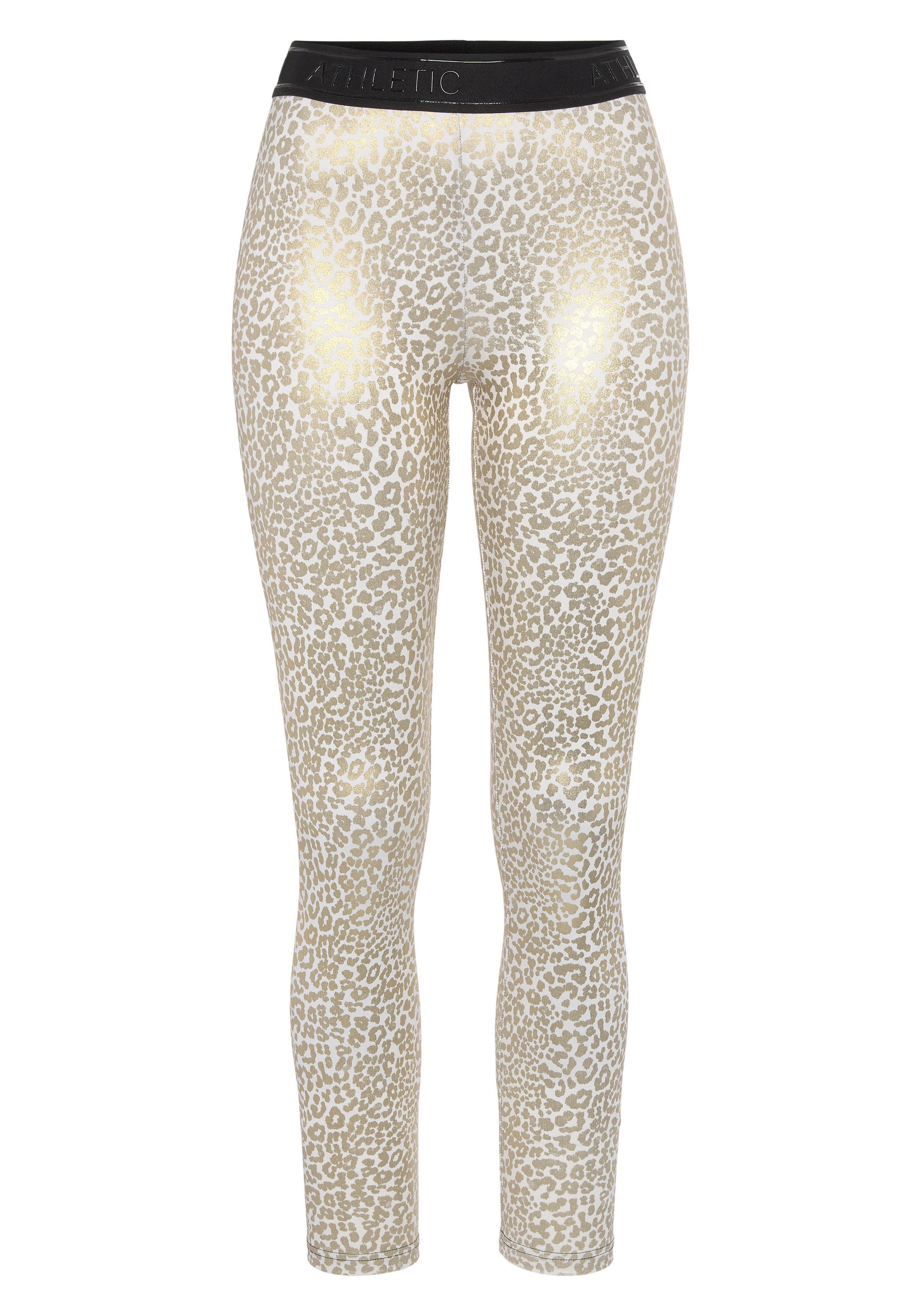 Leggings von Lascana Active für Damen. Mit Alloverprint im Leo-Look. Elastischer Bund mit geprägtem Print. Trageangenehme, atmungsaktive und elastische Qualität.