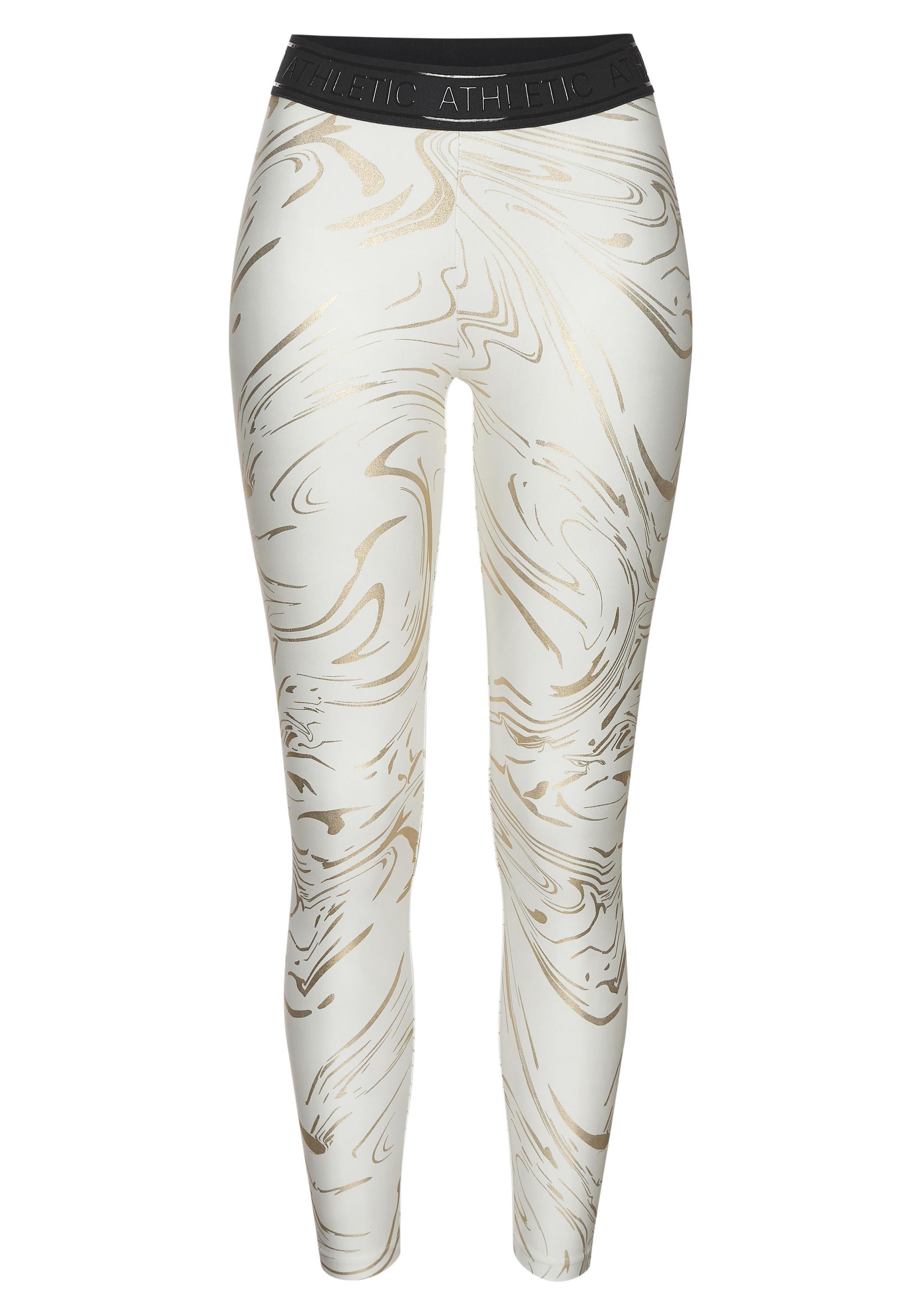 Performance Leggings von Lascana Active für Damen. Mit Alloverprint im abstrakten Look. Geprägter Print im elastischen Bund. Trageangenehme, elastische und atmungsaktive Qualität.
