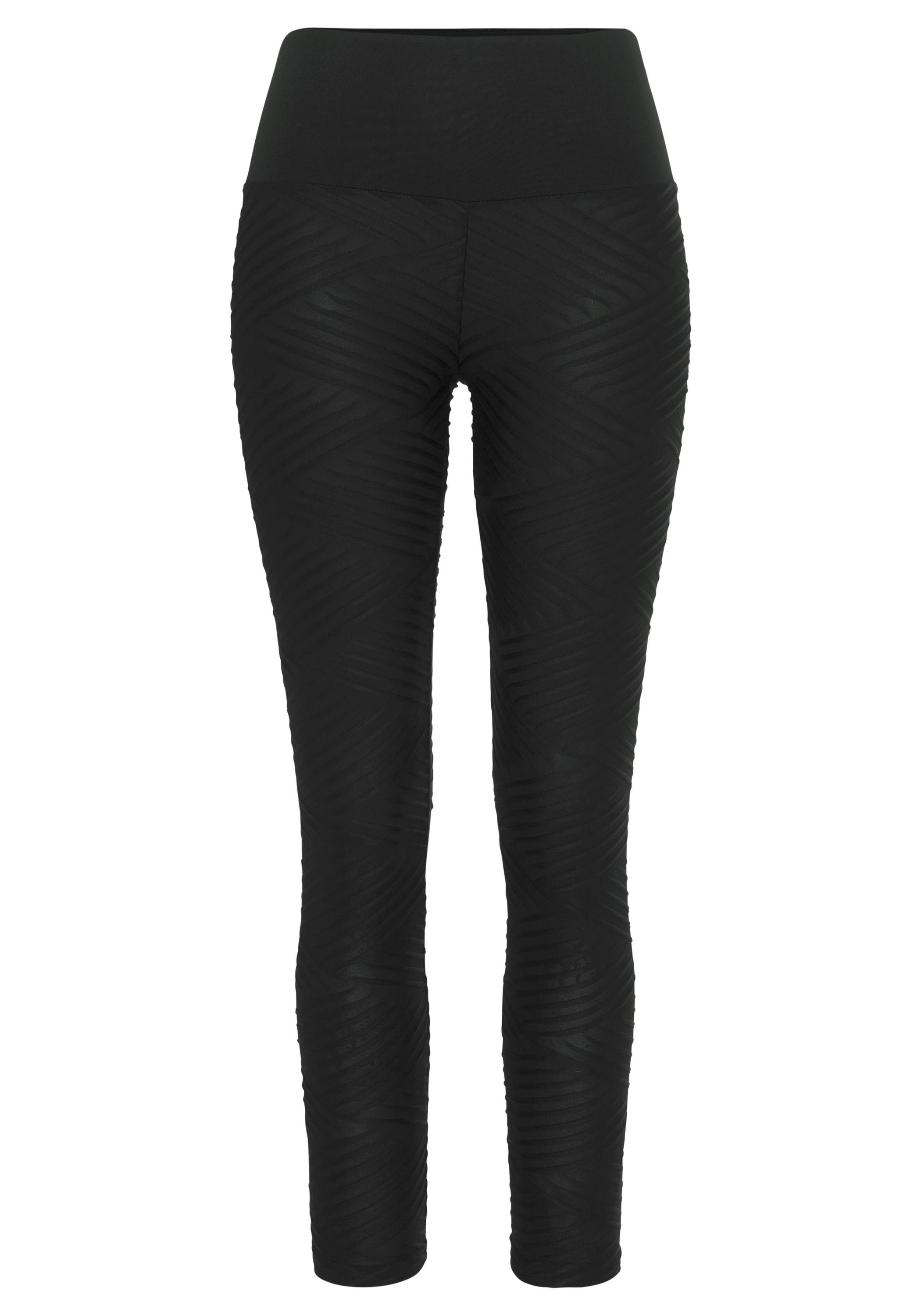 Performance-Leggings von Lascana Active mit attraktiver 3D-Struktur. Bequemes, breites elastisches Bündchen mit praktischer Reißverschlusstasche und Markenlogo auf der Rückseite. Gut kombinierbar. Elastisches, atmungsaktives Funktionsmaterial.