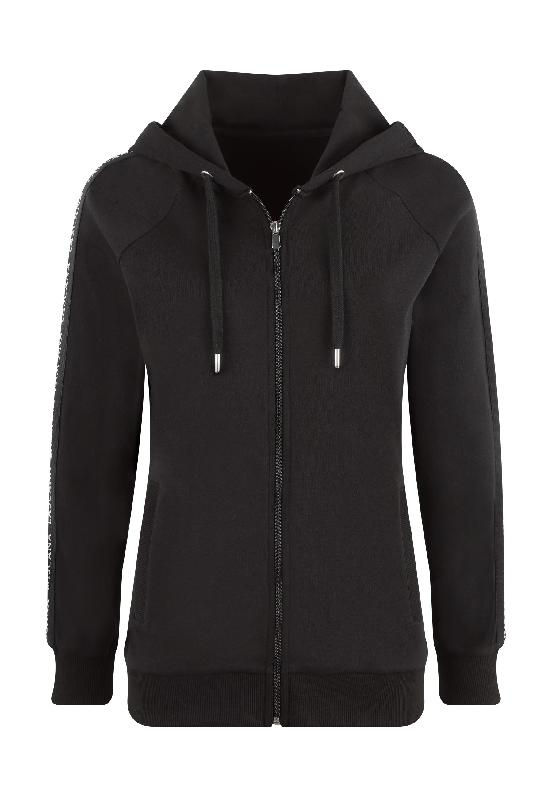 Performance Sweatjacke von Lascana Active. Kapuze mit Kordelzug zum regulieren der Weite. Durchgehender Reißverschluss und seitlichen Eingrifftaschen. Aus 100% Baumwolle (unterstützt Cotton made in Africa).
