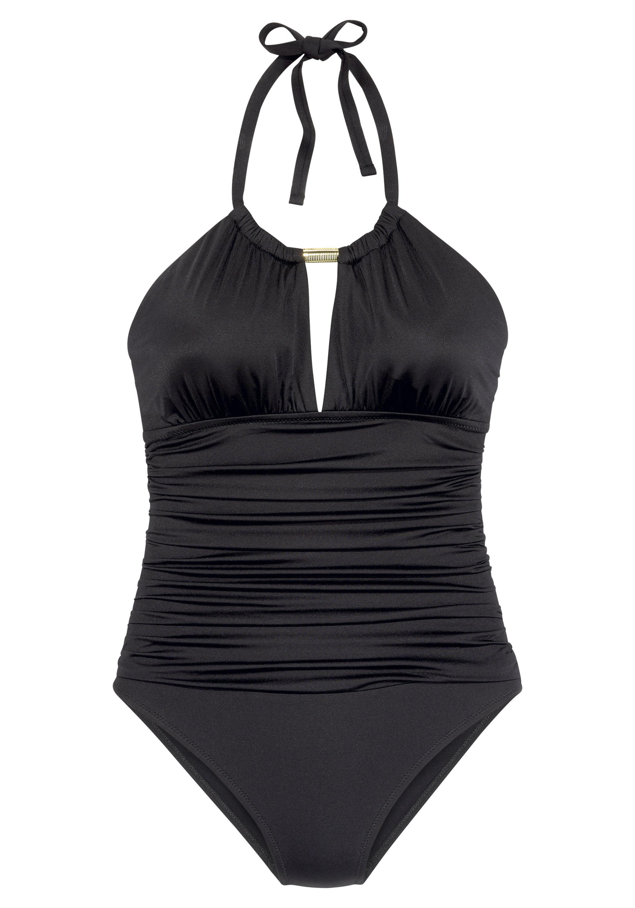 Raffinierter Badeanzug von Lascana. Necklace zum Binden und mit Schmuckdekor. Cut-out zwischen den Cups. Herausnehmbare Softkissen. Formgebende Stäbchen seitlich. Eingearbeitetes Vordermieder. Schnell trocknendes Material.