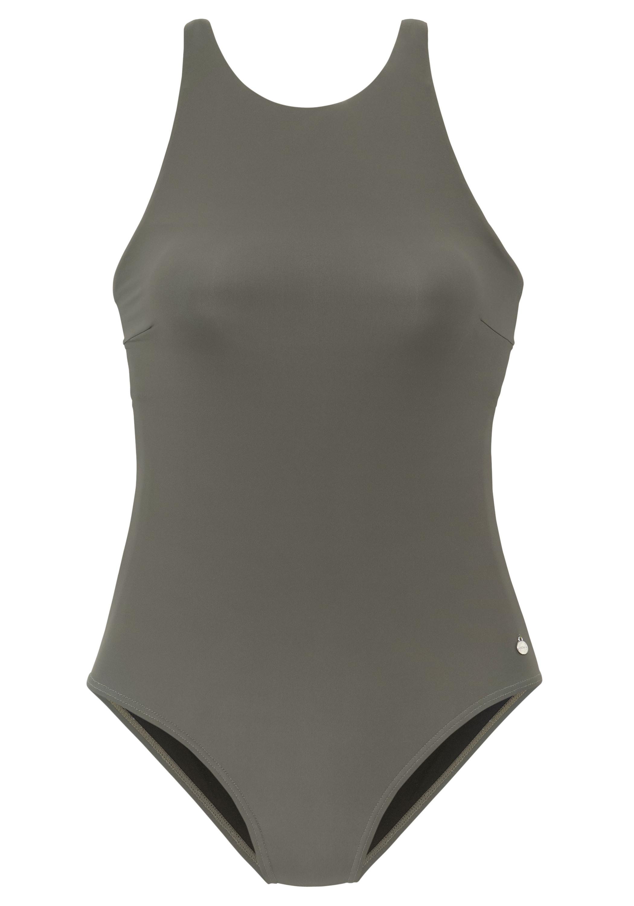 Klassischer Badeanzug von Lascana. Mit verstellbaren Trägern und herausnehmbaren Softcups. Hoch geschlossener Halsausschnitt. Softe Microfaser.
