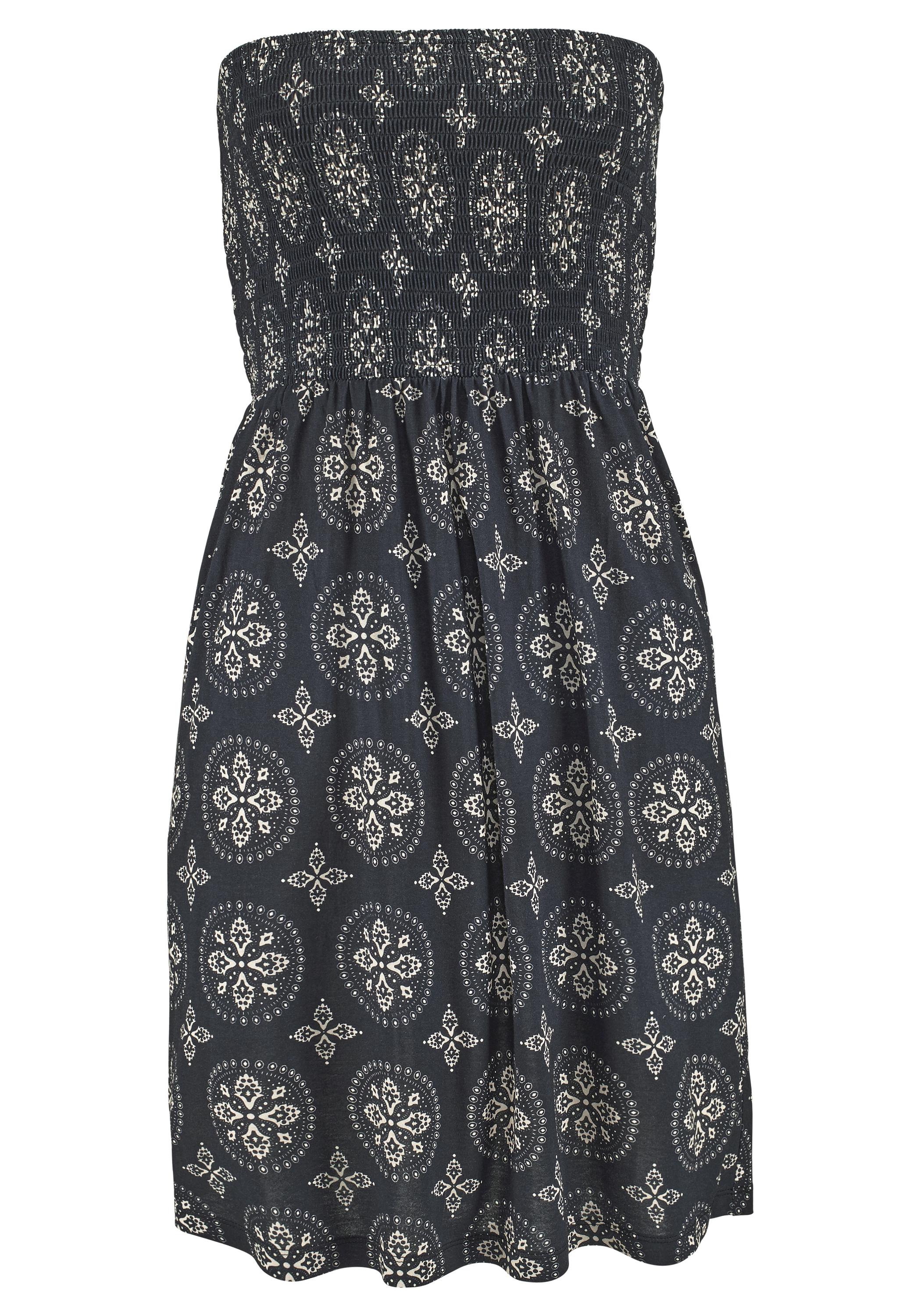 Lascana Bandeaukleid Maxikleid Damen schwarz-beige-bedruckt