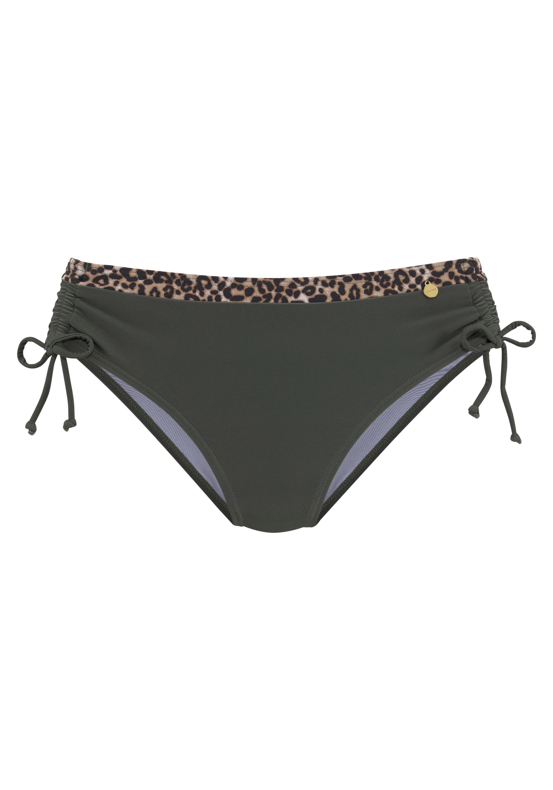 Bikinihose von Lascana. Breiter Bund mit Animal-Muster-Streifen. Seitenstege mit Tunnelzug zum Regulieren. Komfortable Passform. Aus der Mix-Kini-Serie. Mit recycelten Fasern.