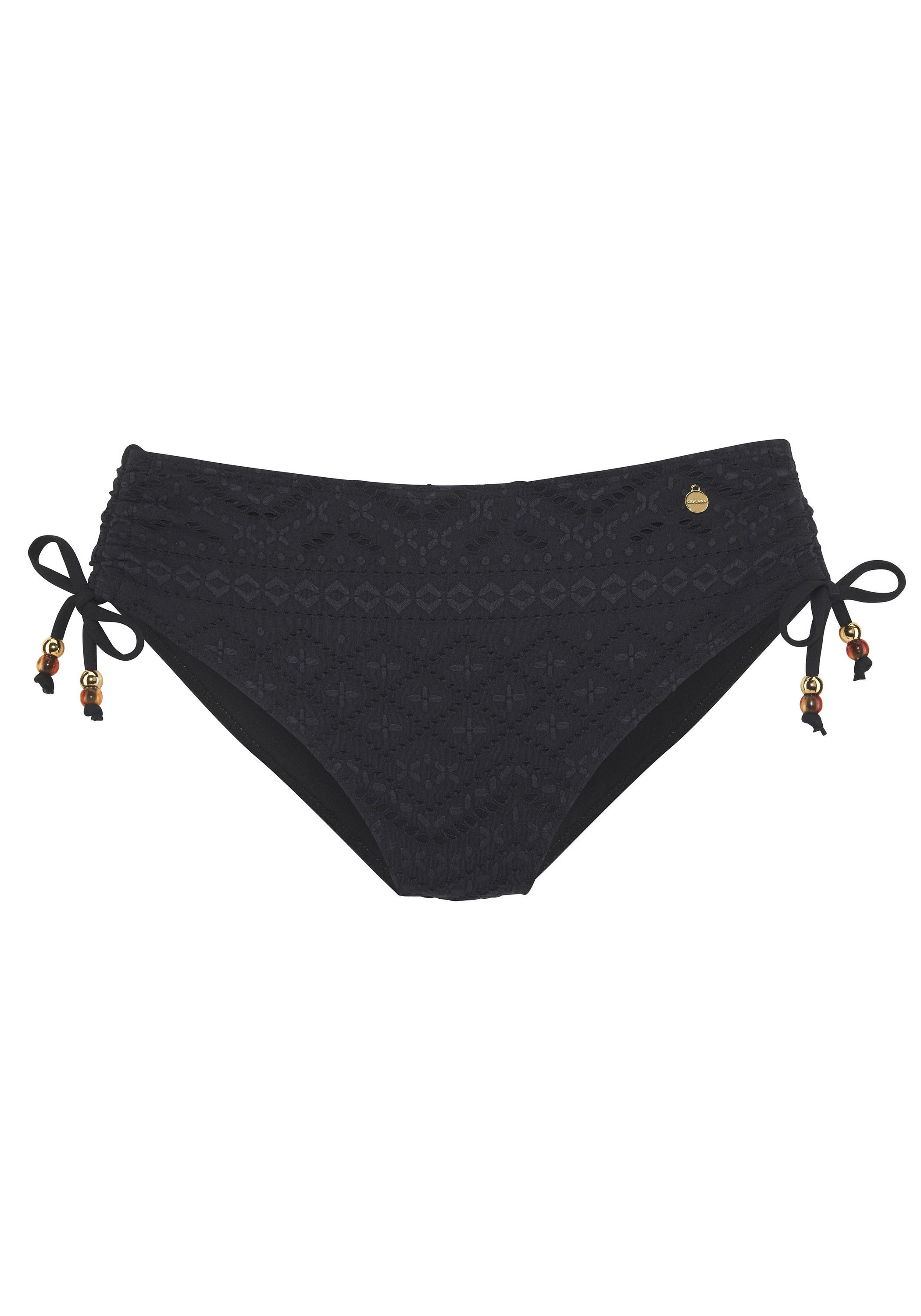 Unifarbene Bikinihose von Lascana mit modischer Struktur. Etwas höher geschnitten. Seitlich individuell regulierbar. Metallisch glänzende Zierperlen. Mix-Kini-Prinzip. Trageangenehme Qualität mit recyceltem Polyamid.