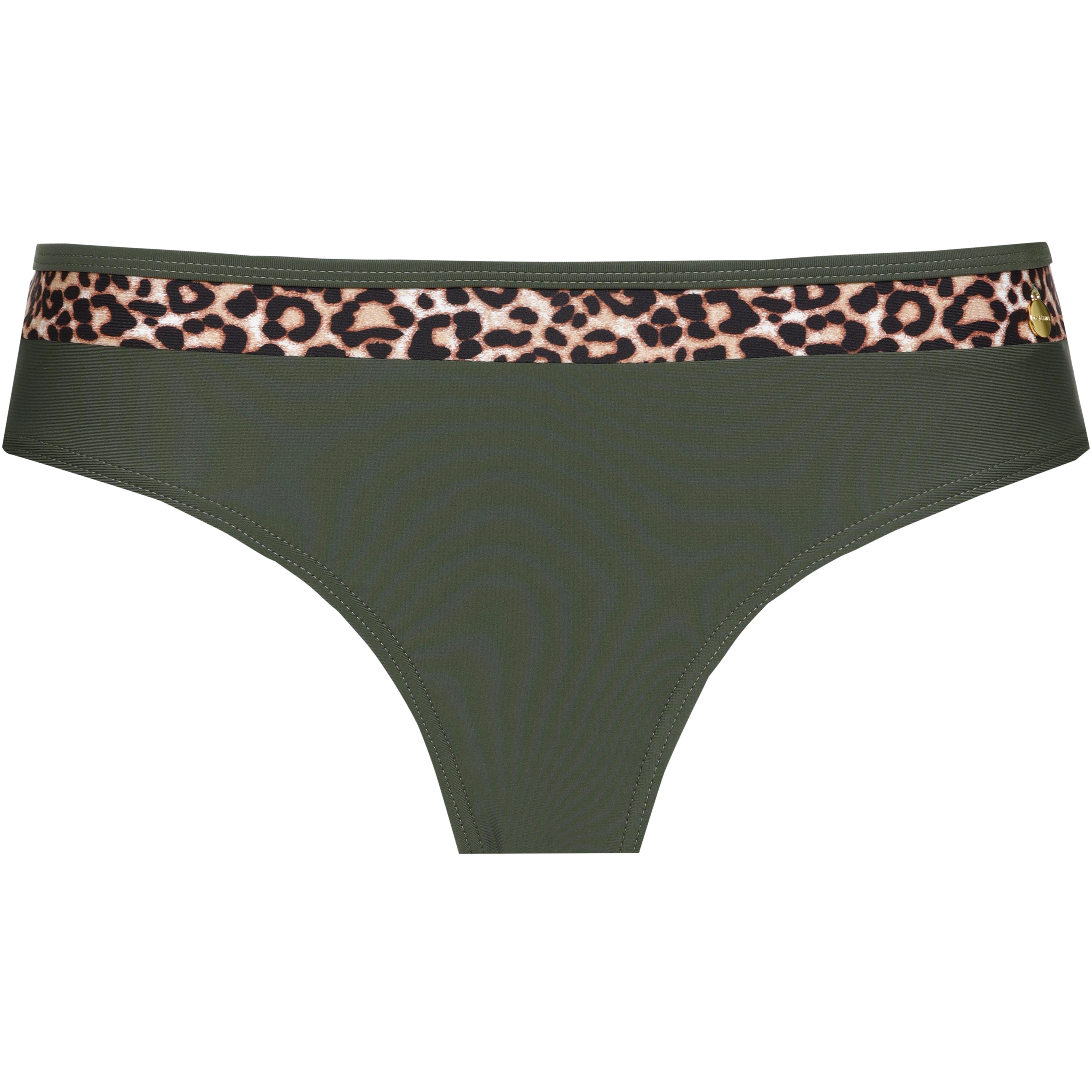 Bikinihose in Slip-Passform mit gefütterter Vorderseite; elastisches Material; Leopardmuster am Bund; metallischer Label-Anhänger an der Hüfte; Obermaterial 82% Polyamid, 18% Elastan; Futter 100% Polyester.