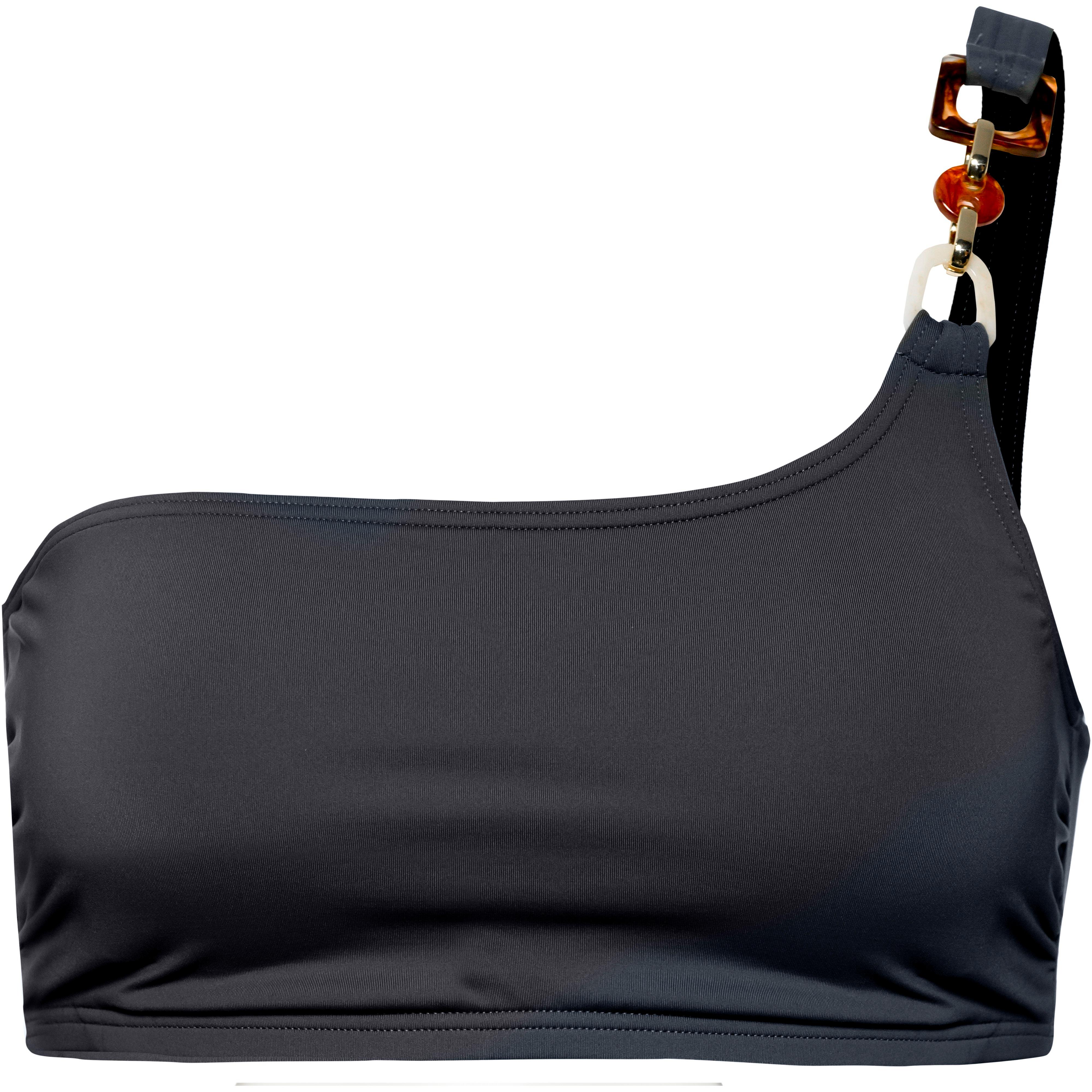 Bikini-Bustier mit Schmuckdekor am Träger; One-Shoulder-Design aus elastischem Material; herausnehmbare Polster; mit Recyclingmaterial hergestellt; Obermaterial 84% Polyamid (recycelt), 16% Elastan; Futter 92% Polyester, 8% Elastan.