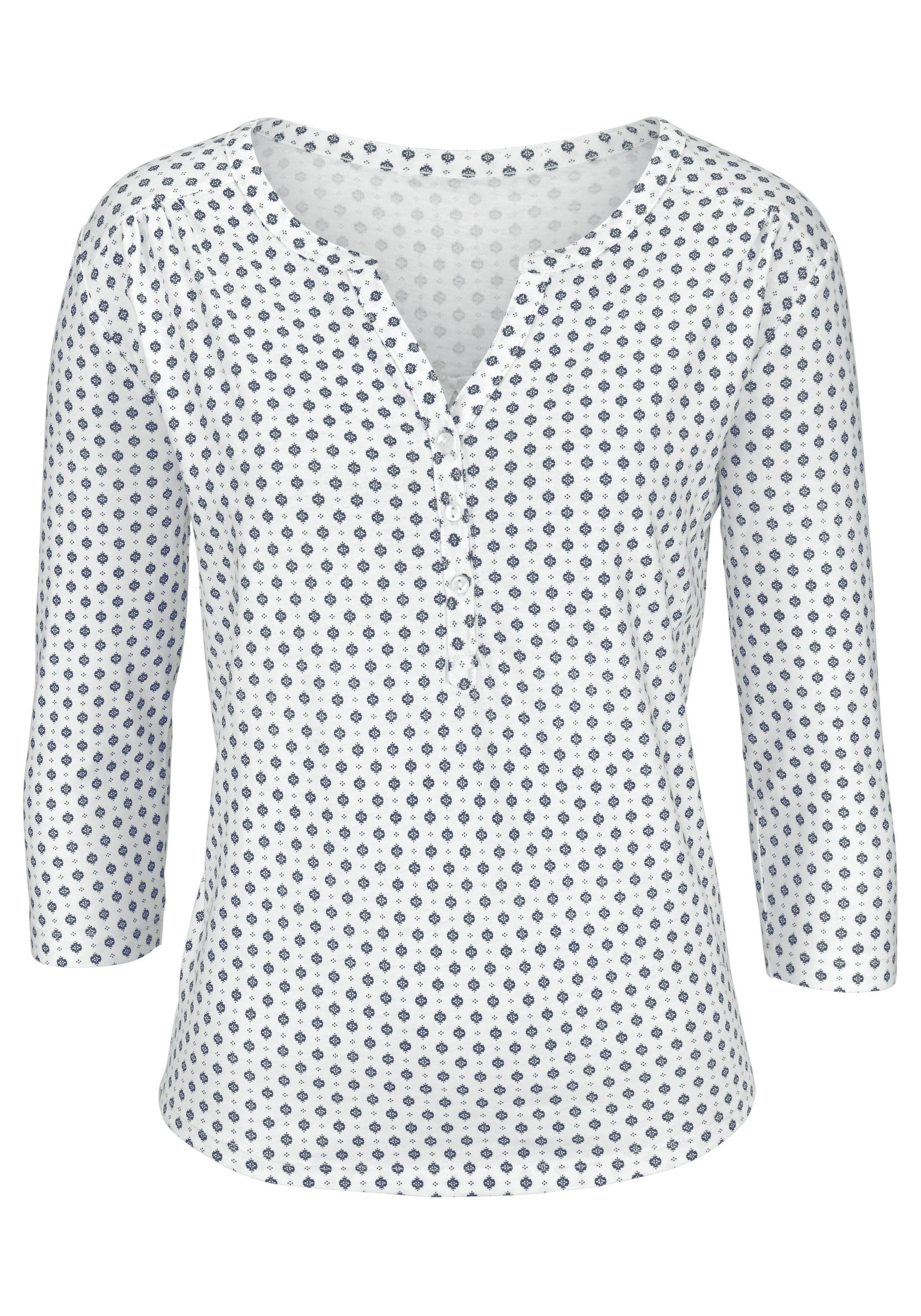 Lascana: 3/4-Arm-Shirt mit dekorativen Zierfalten an den Schultern. Besonderer V-Ausschnitt mit drei Knöpfen. Leicht gerundeter Saum. Aus 65% Polyester, 35% Viskose.