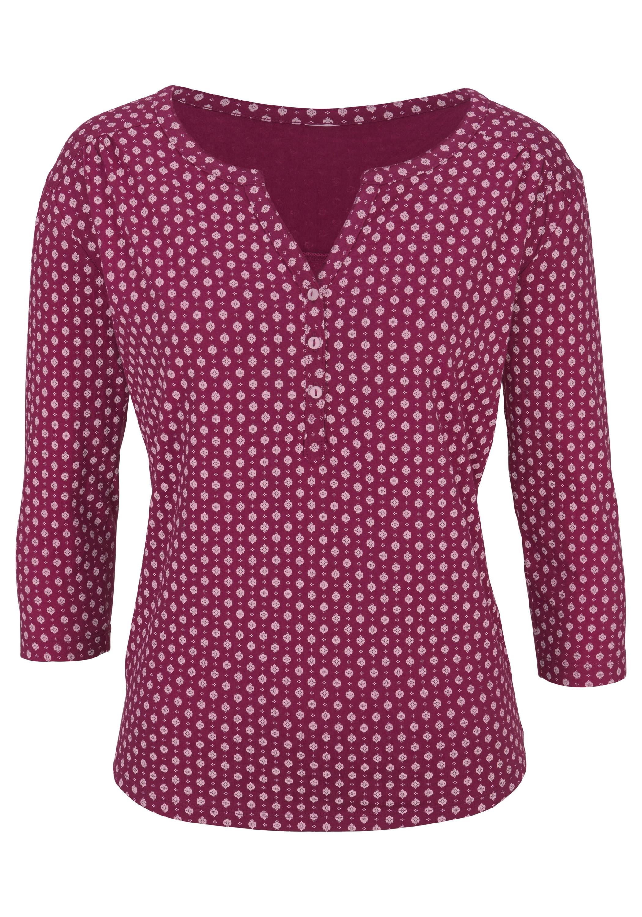 Lascana: 3/4-Arm-Shirt mit dekorativen Zierfalten an den Schultern. Besonderer V-Ausschnitt mit drei Knöpfen. Leicht gerundeter Saum. Aus 65% Polyester, 35% Viskose.