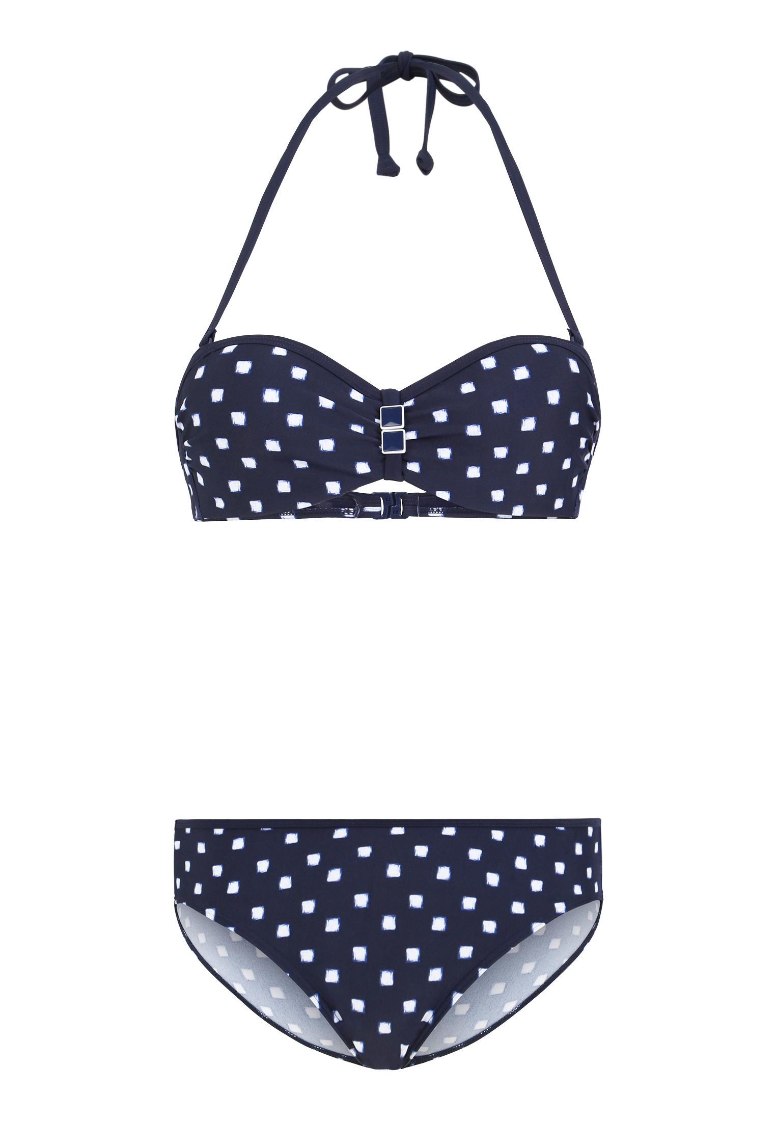 Mit modischem Print. Top mit wattierten Cups für ein verführerisches Dekolletee. Seitliche Stäbchen für guten Halt. Abnehmbare Träger, im Nacken zu binden. Top im Rücken zu schließen. Seitlich extrabreit geschnittene Hose.