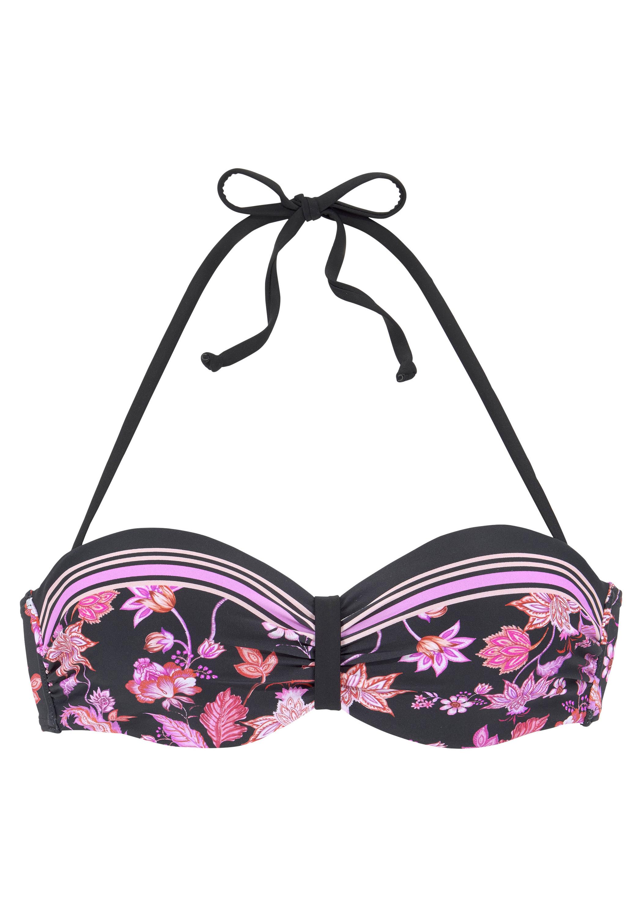 Floral bedrucktes Bügel-Bandeau-Bikinitop von Lascana. Mit abnehmbarem Neckholder-Träger. Wattierte Cups und seitliche Stäbchen. Elastisches Material. Mit recyceltem Polyamid.