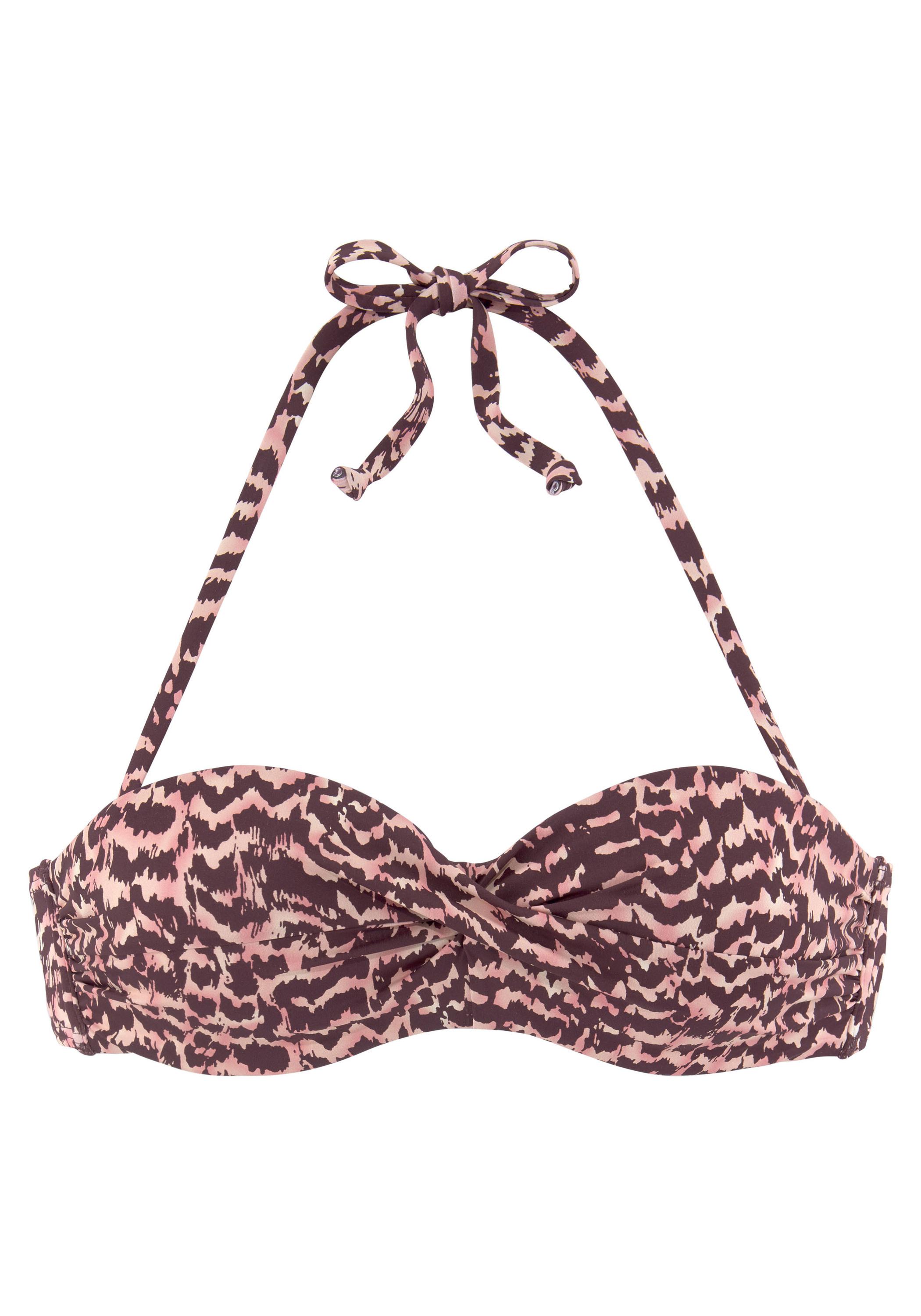 Bügel-Bandeau-Top von Lascana. Alloverprint in modischer Optik. Cups mit wattierten Einlagen, abnehmbaren Trägern, seitlichen Stäbchen und mittiger Drapierung. Necklace zum Binden. Aus der Mix-Kini-Serie. Recycelte Microfaser.